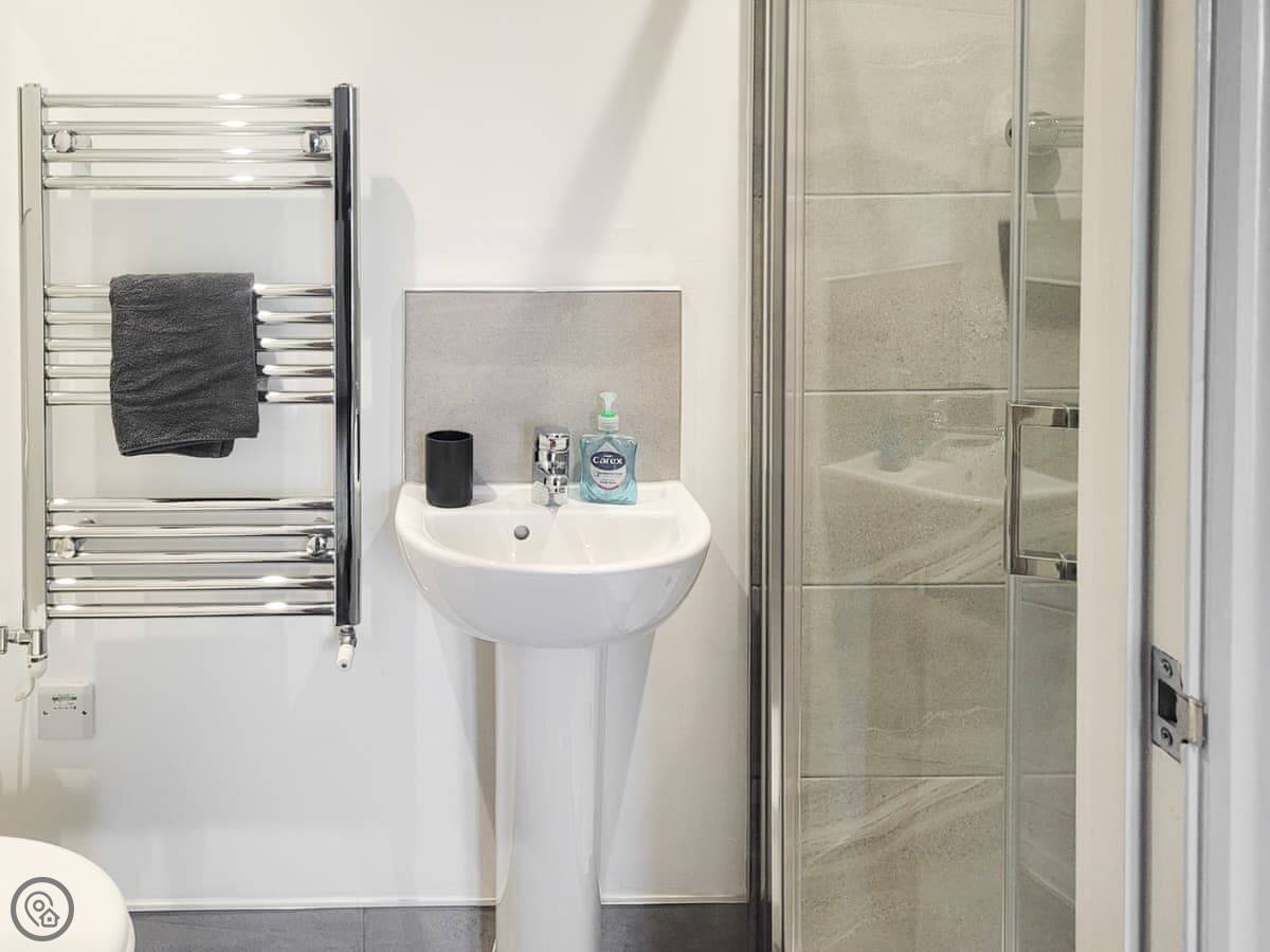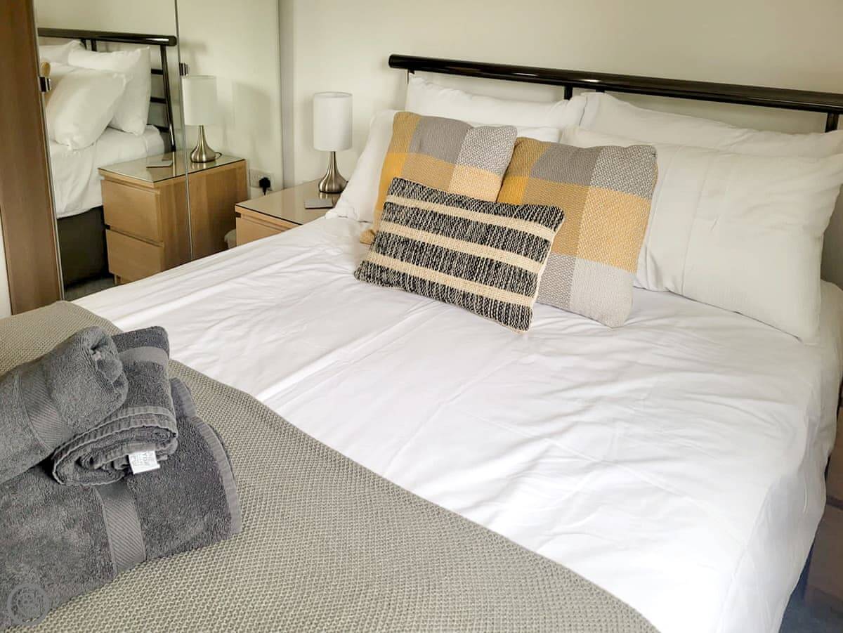For facilities, you've got a washing machine, dishwasher, WiFi, and parking on site. Bedding and towels are included. We don't allow pets.