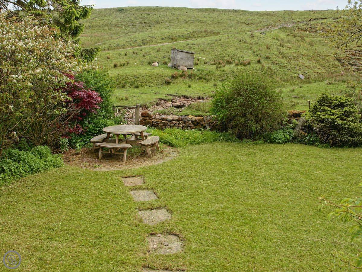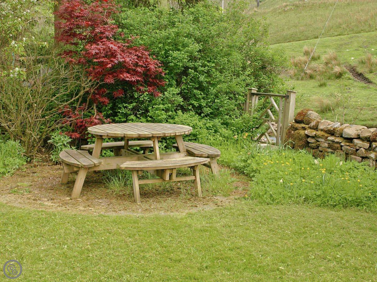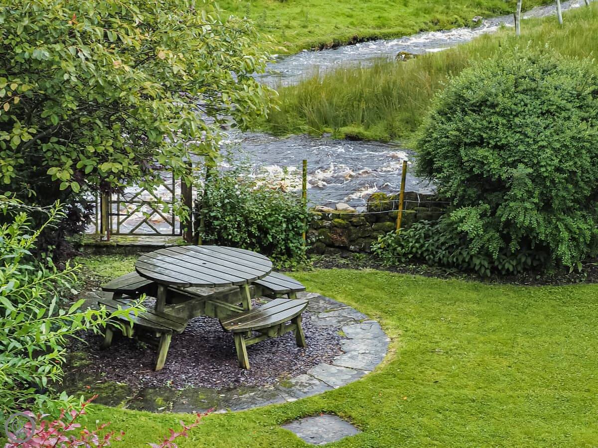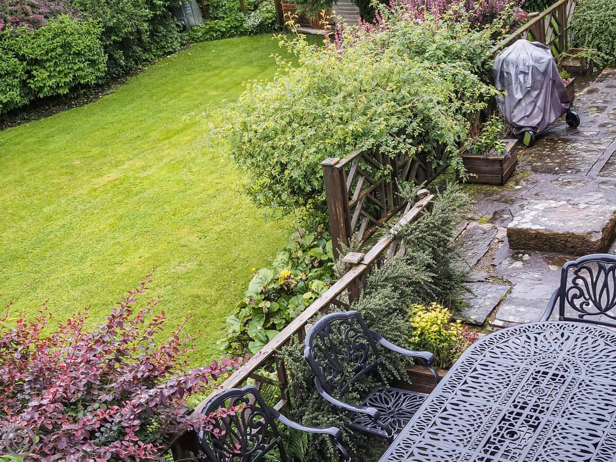 The garden is fully enclosed. It faces south and gets a lot of sun. It overlooks Oughtershaw Beck, which is just a small stream really. There's a decent sized patio out there with a barbecue.