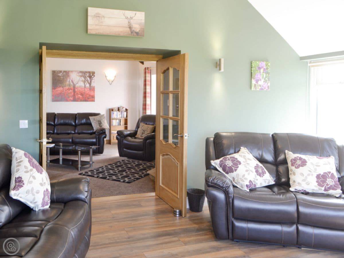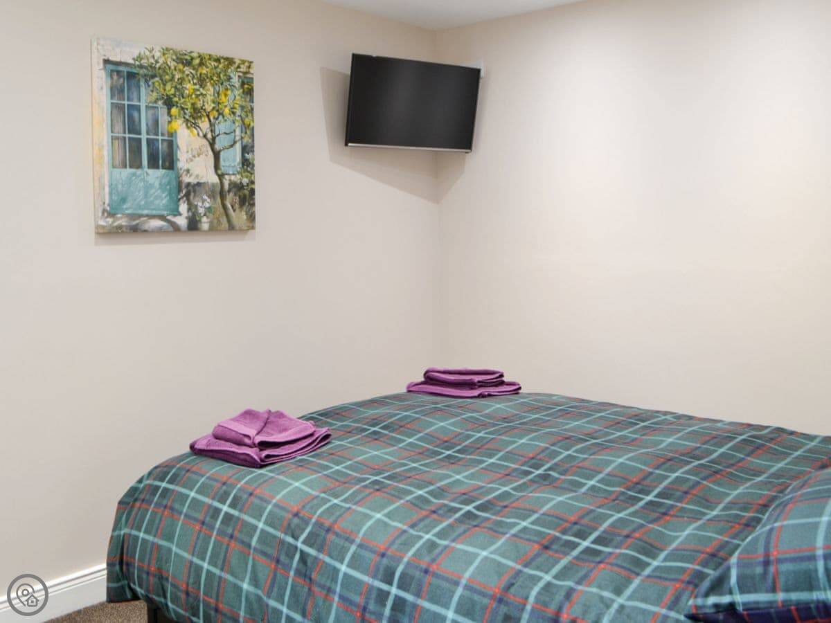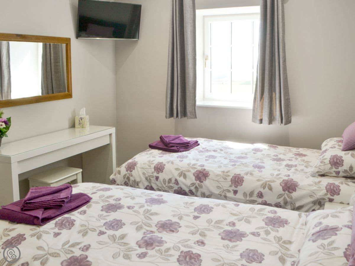 It sleeps six people in three bedrooms. Two bathrooms, one is a wet room. It's got a 4 Star rating. We renovated it a few years ago and tried to make it comfortable, not flashy. Each bedroom has its own TV. There's a multi-fuel stove in the living room.
