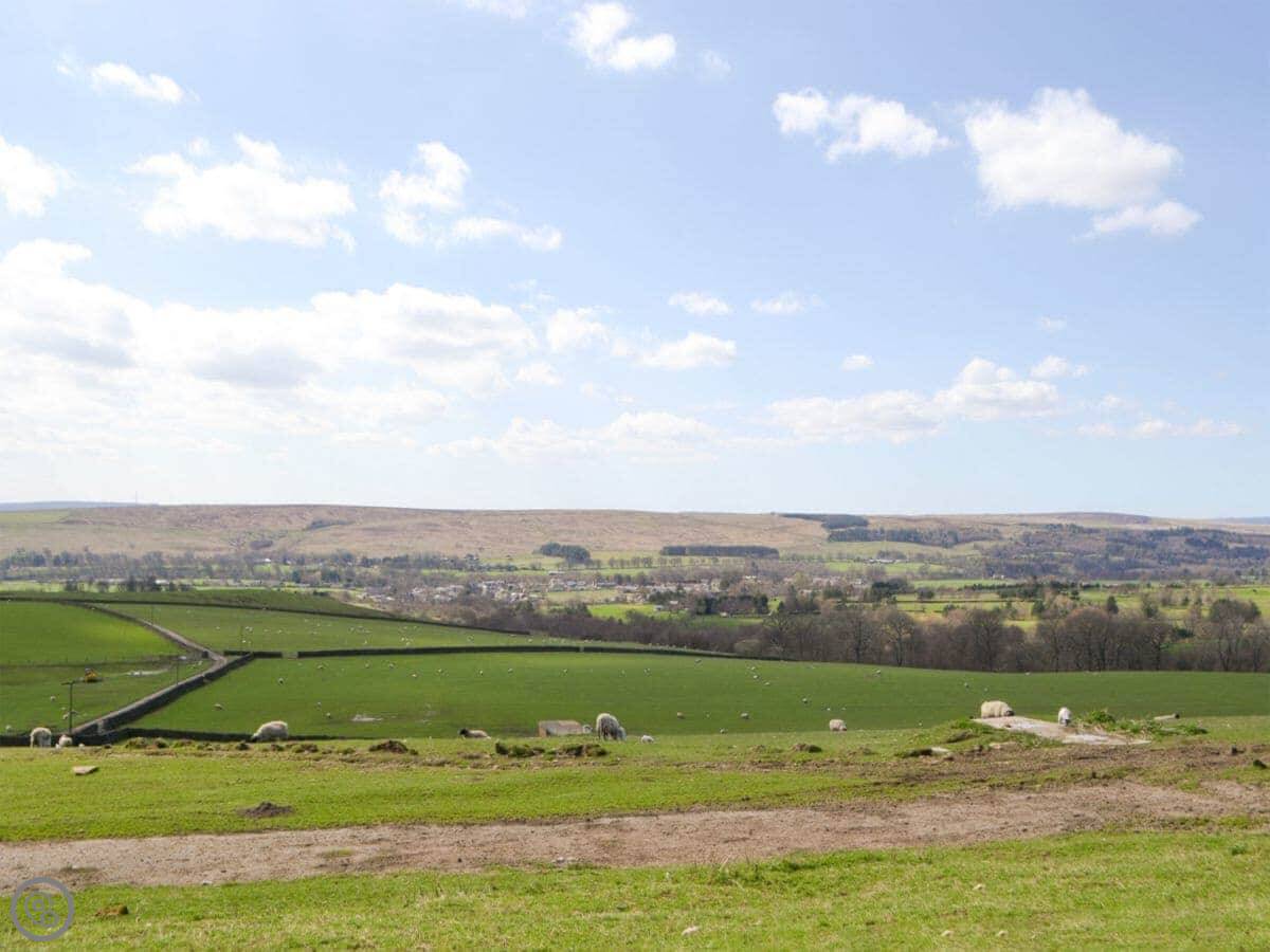 This is Curlew Cottage. It's a converted barn on our beef and sheep farm, just outside Bellingham. You get good views over the fields towards the National Park.
