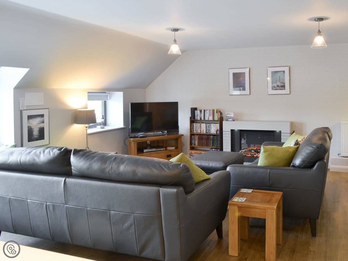 This is the Alnwick Old Brewery Apartment. It's in the town centre, on the fifth floor of an old malthouse building. The views from the front windows are nice, looking over a field towards the castle.