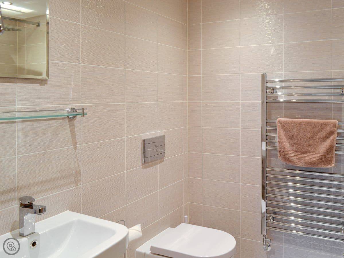 It sleeps four in two bedrooms. Both bedrooms have their own bathroom with a walk-in shower, which is handy. It's got a 4 Star rating, so it's been finished to a decent standard. It's all open plan.