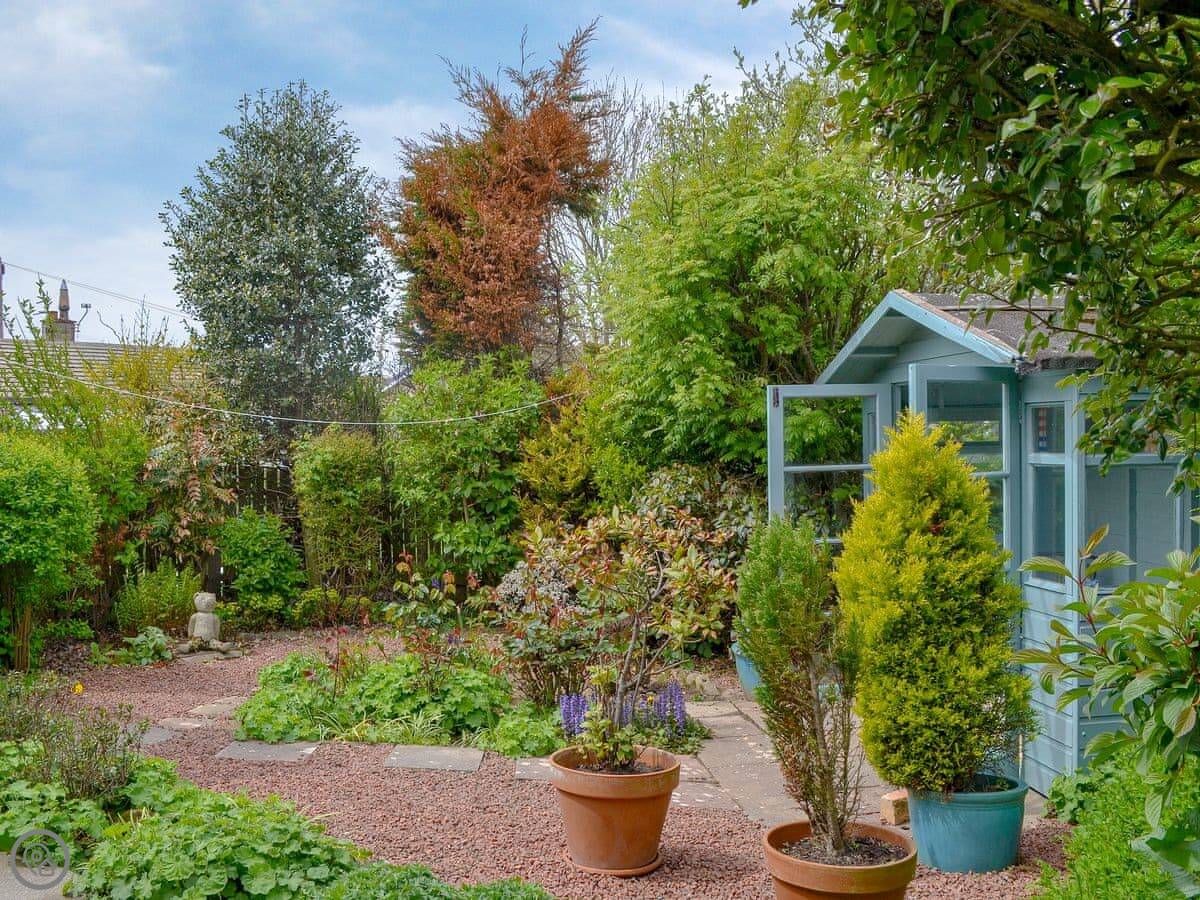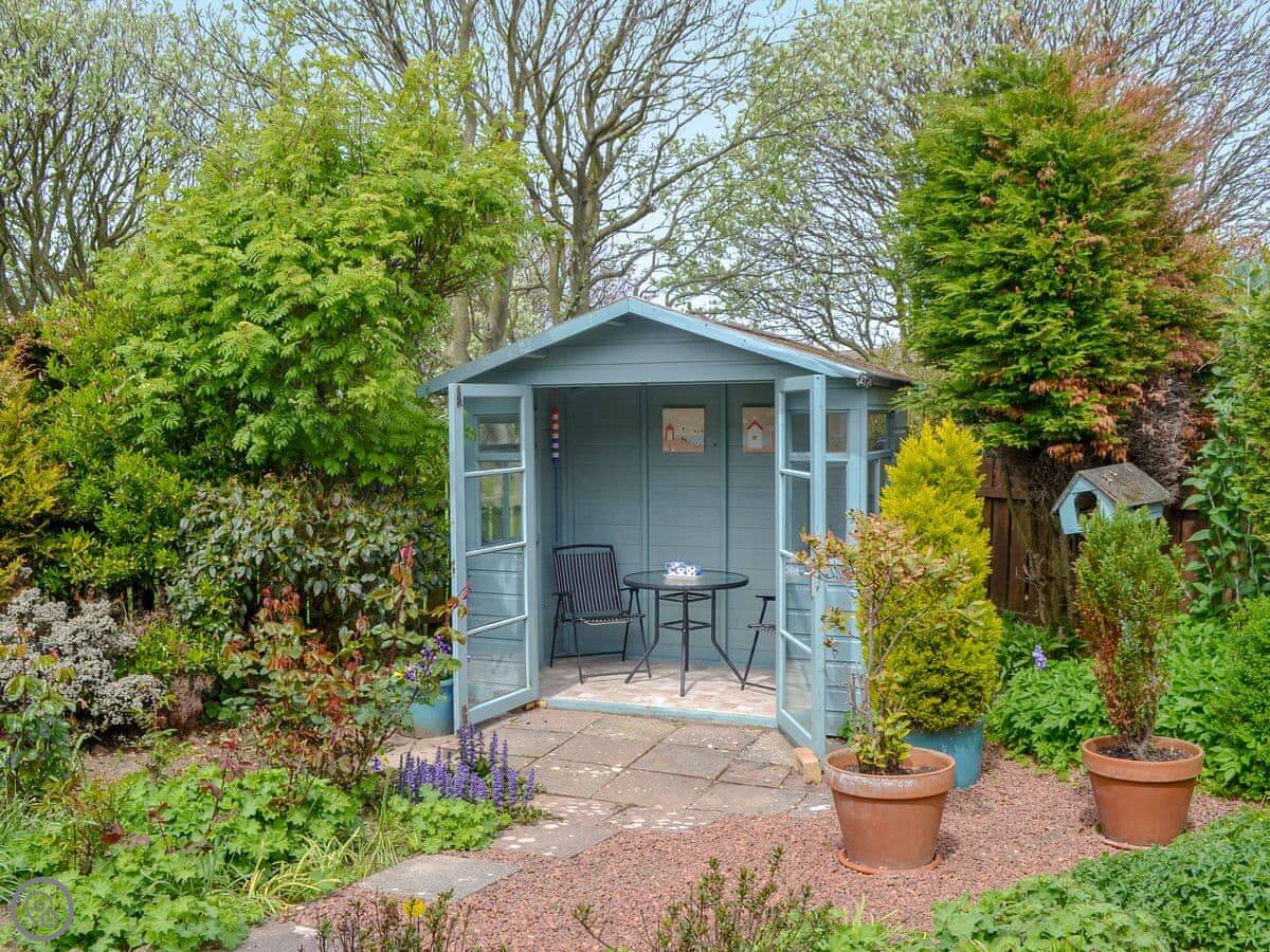 The back garden is fully enclosed. It's got a summerhouse, which is where the name comes from. You can sit out there if it's dry.