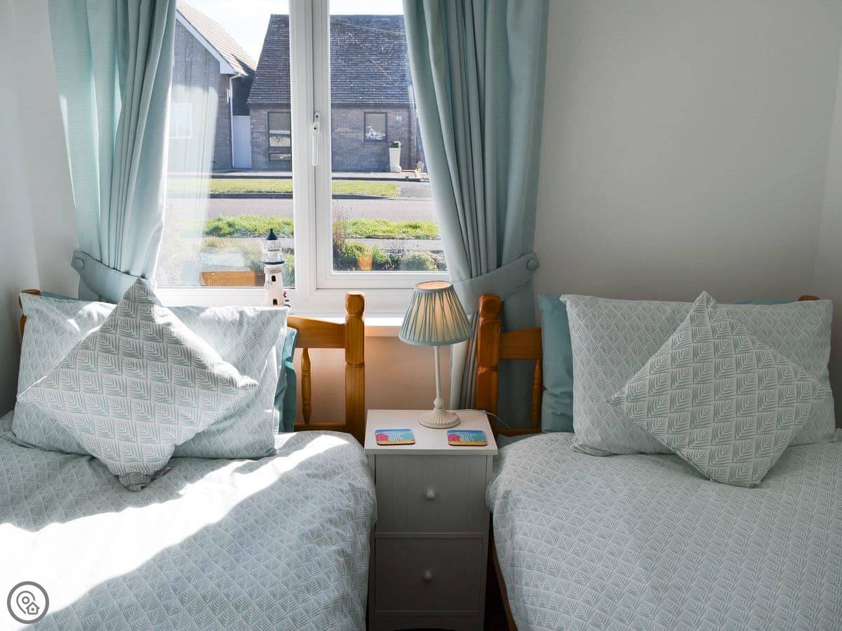 Summerhouse Cottage is a semi-detached bungalow in Beadnell. Everything's on one level. It sleeps four, with two bedrooms and one bathroom. It's a 3 Star place, so it's comfortable and clean.