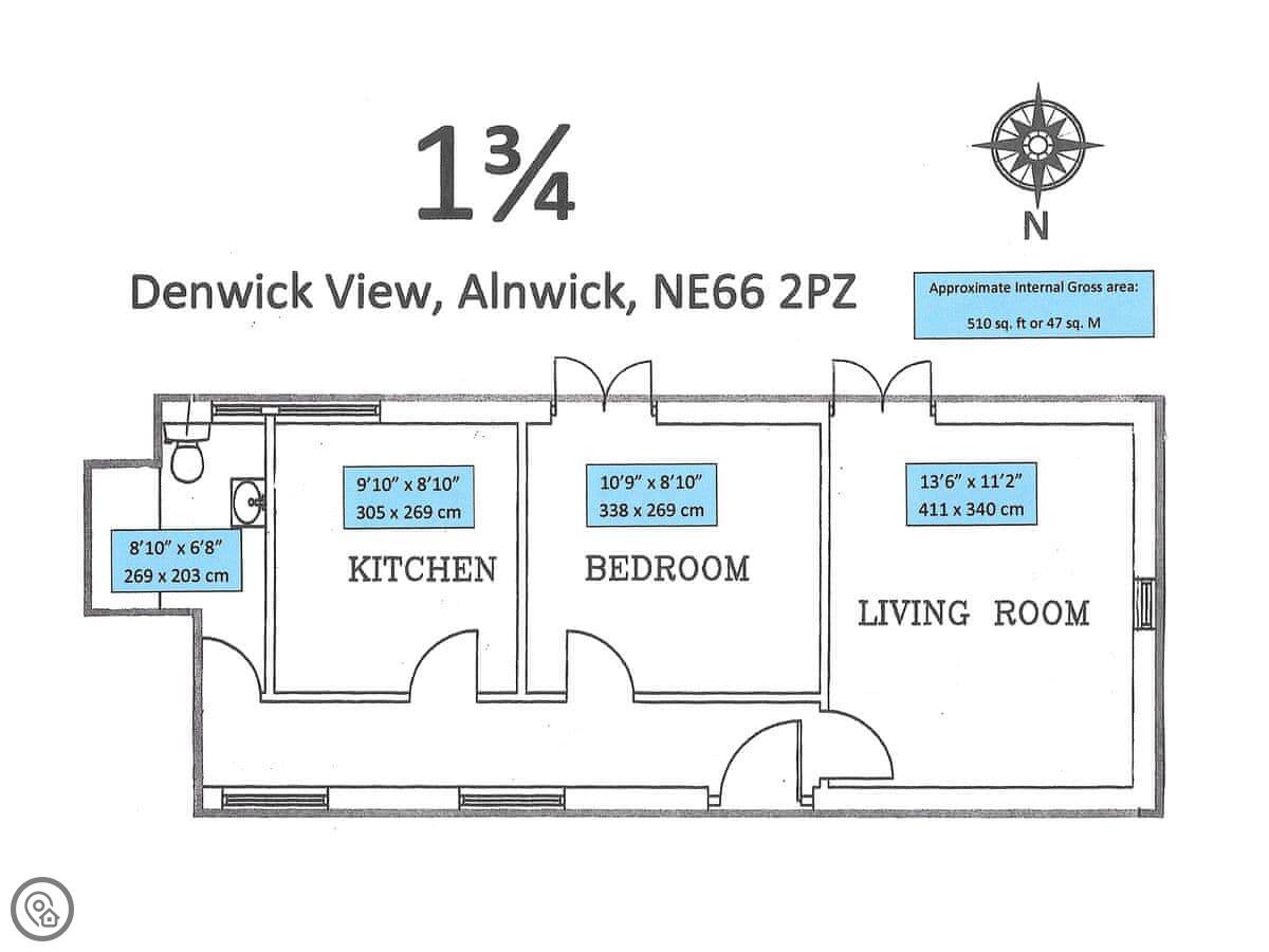1¾ Denwick View is a charming single-storey annex to the owners’ home situated in a quiet, mature residential area on the fringe of the historic market town of Alnwick. The property has been immaculately presented and tastefully furnished throughout with much thought, care and attention to detail. There are patio doors from the living room and bedroom which lead to the rear garden, and for those cooler evenings there is a cosy, modern electric fire in the living room. The lovely private sitting-out area looking onto the shared garden is south-facing, and is a tranquil spot to dine al fresco and listen to the birdsong.