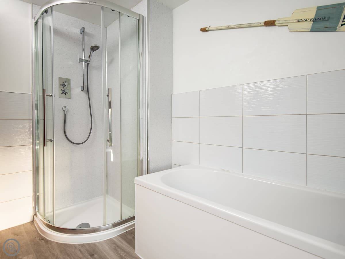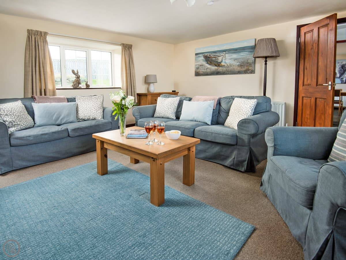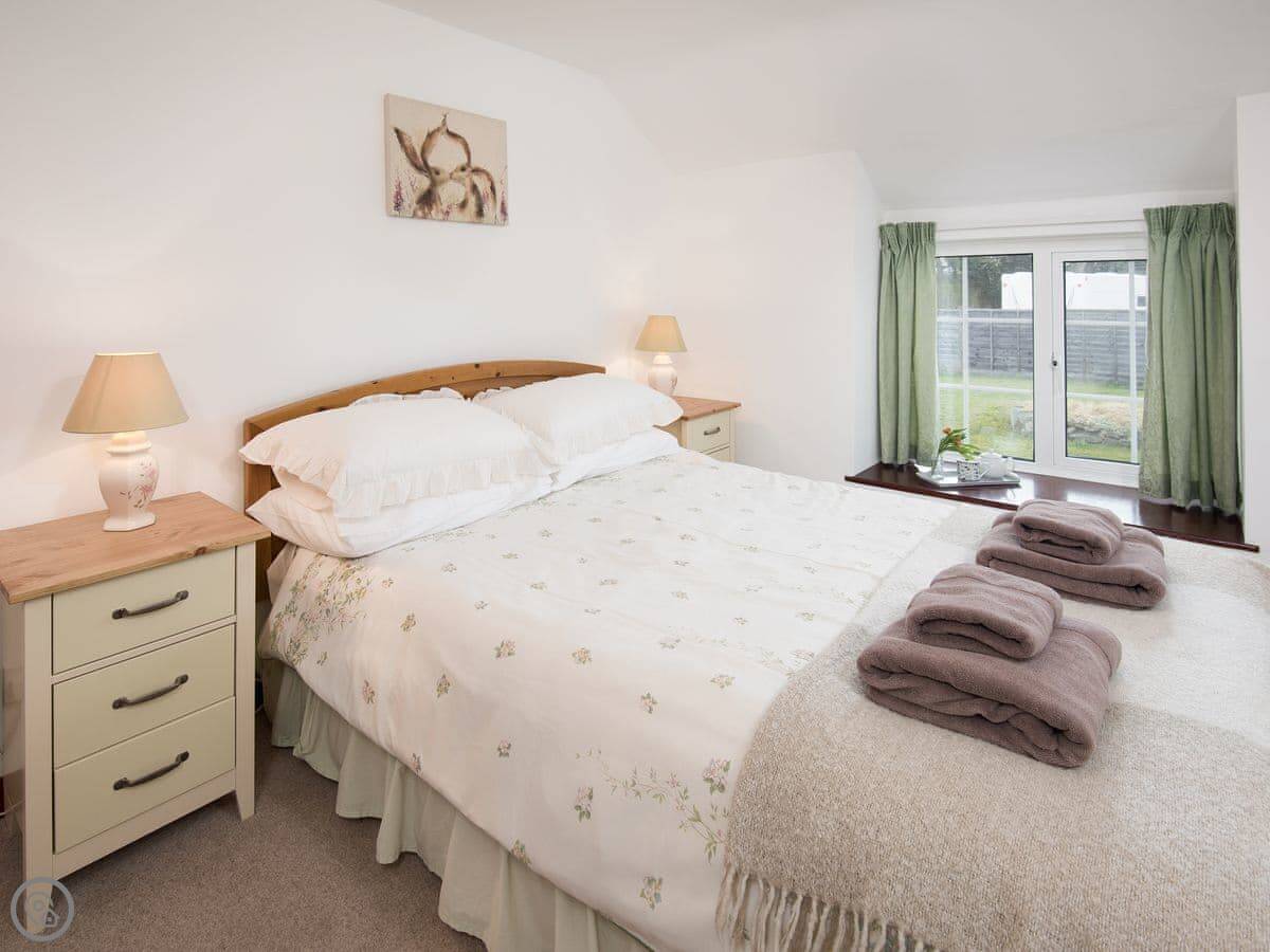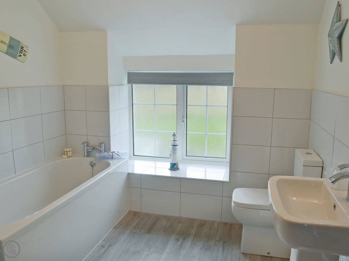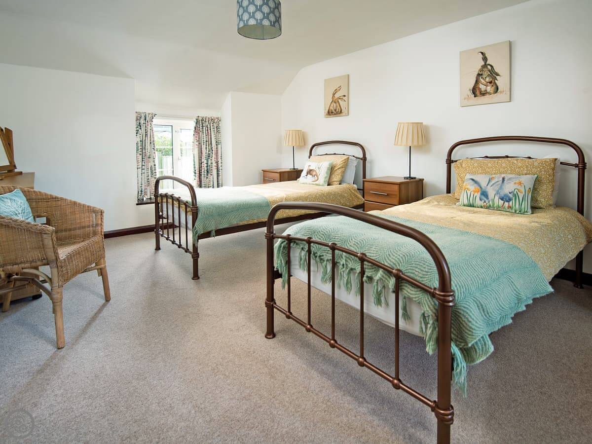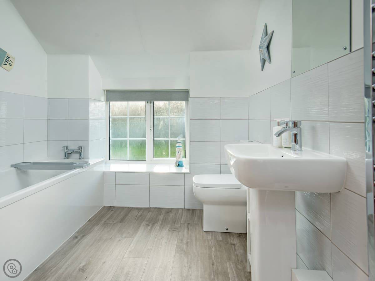 It sleeps six. Three bedrooms, all doubles, and one bathroom upstairs. There's a cloakroom downstairs too. It's a 4 Star place, so it's well looked after and comfortable. The living room has a wood burner. The kitchen is a decent size for a cottage.