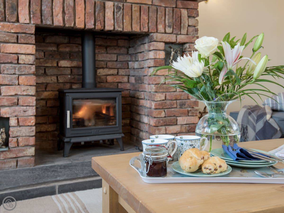 Facilities wise: you've got the wood burner, a dishwasher, washing machine, TV, and WiFi. Bedding and towels are included. There's parking, a garden, and a bike store. We can provide a cot and highchair. No pets, sorry.