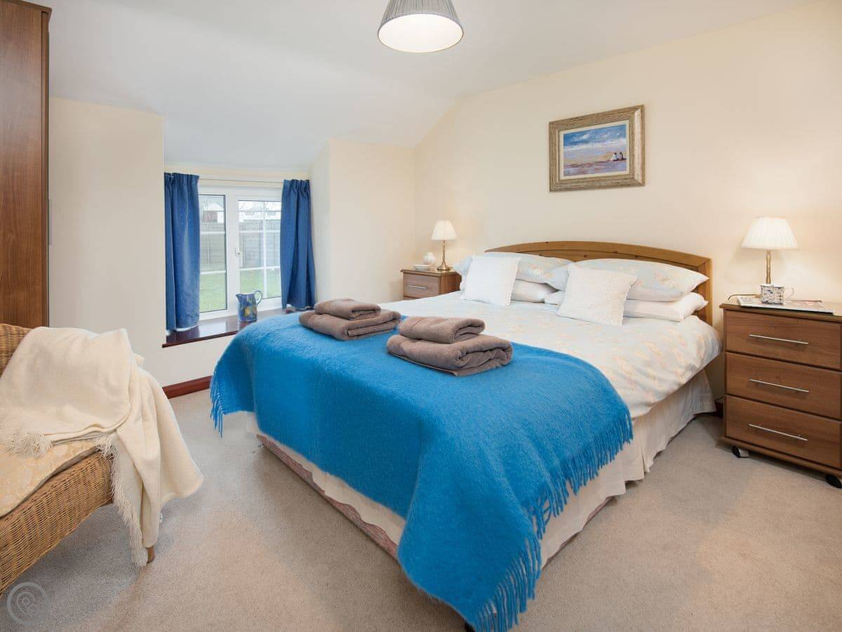 You look out over farmland towards the sea. You can see Dunstanburgh Castle from the upstairs windows. It's a quiet spot.