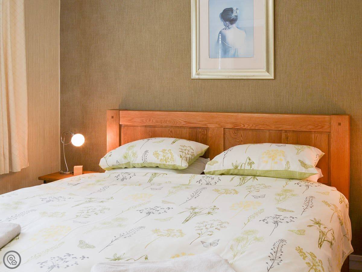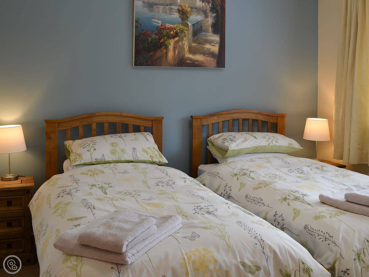 It sleeps five. Three bedrooms, two bathrooms. One is an ensuite to the main bedroom. It's a 4 Star place, so it's comfortable and well looked after. The stairs are fairly normal.