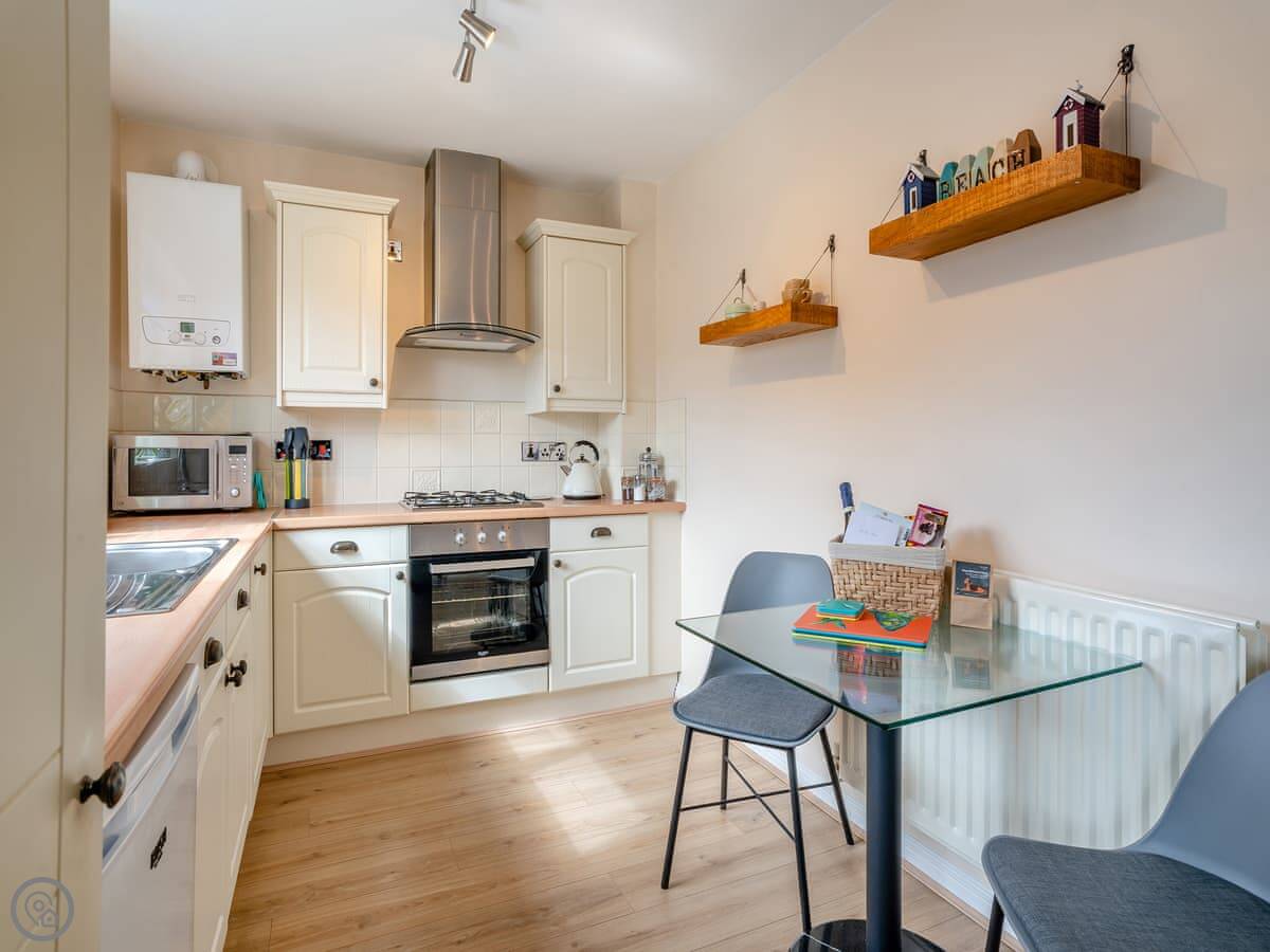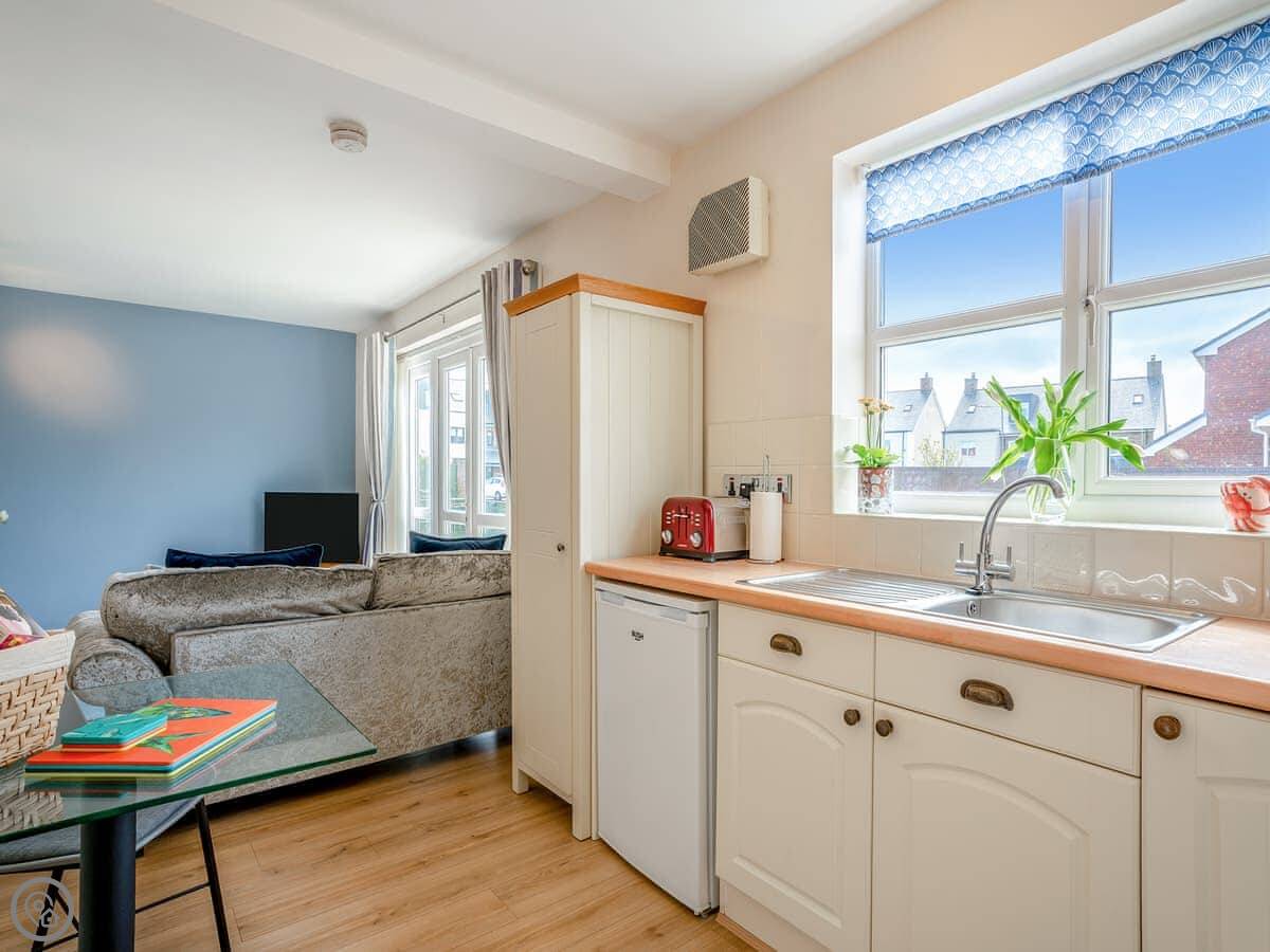 Tern Point is a ground floor apartment in a modern block in Beadnell. It's a short walk from the beach, maybe five minutes. It's flat, so that's good if stairs are a problem.
