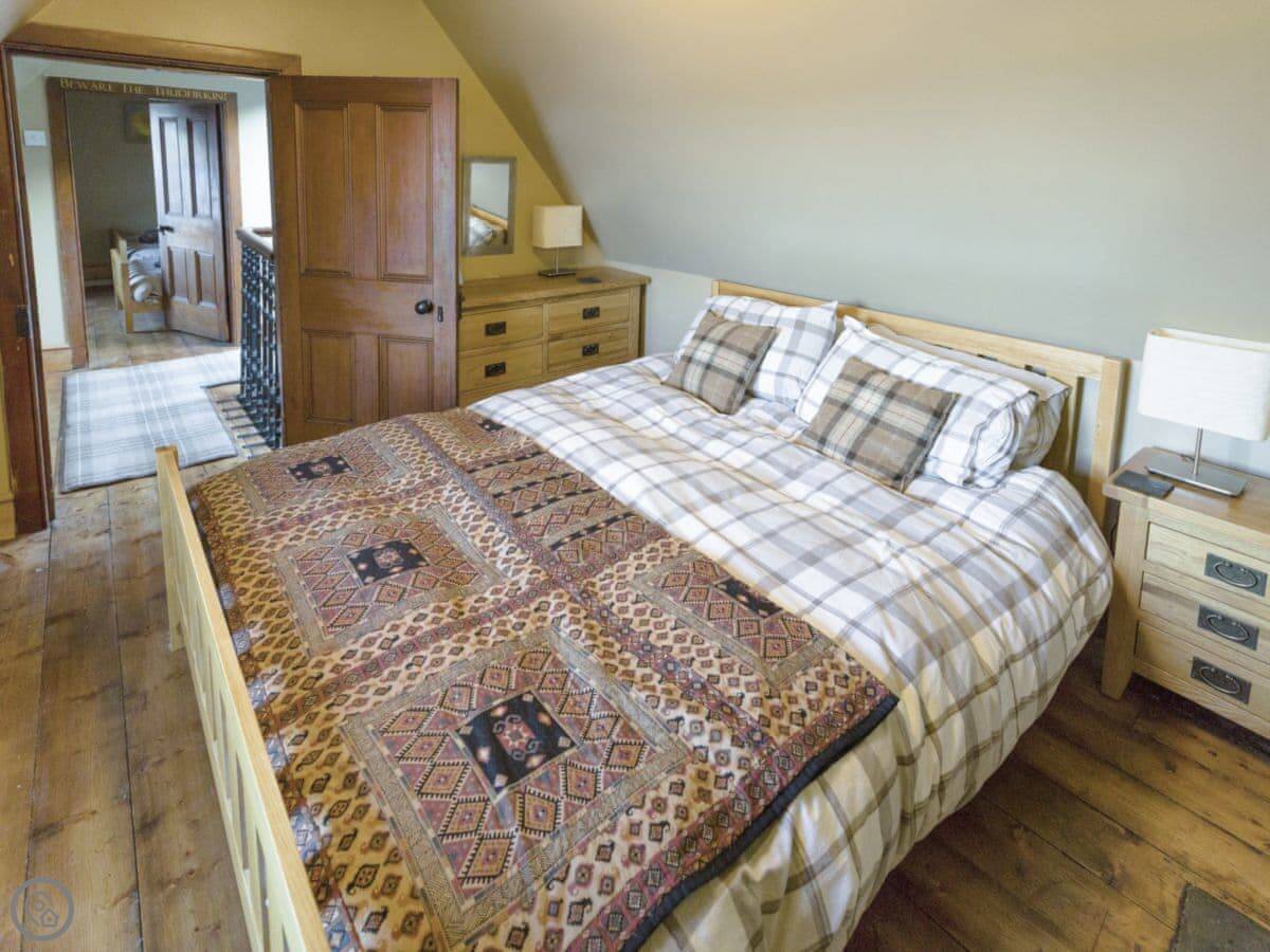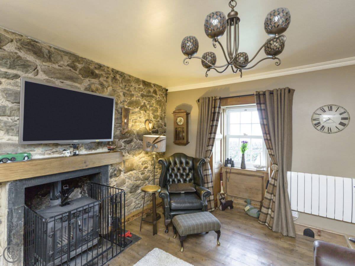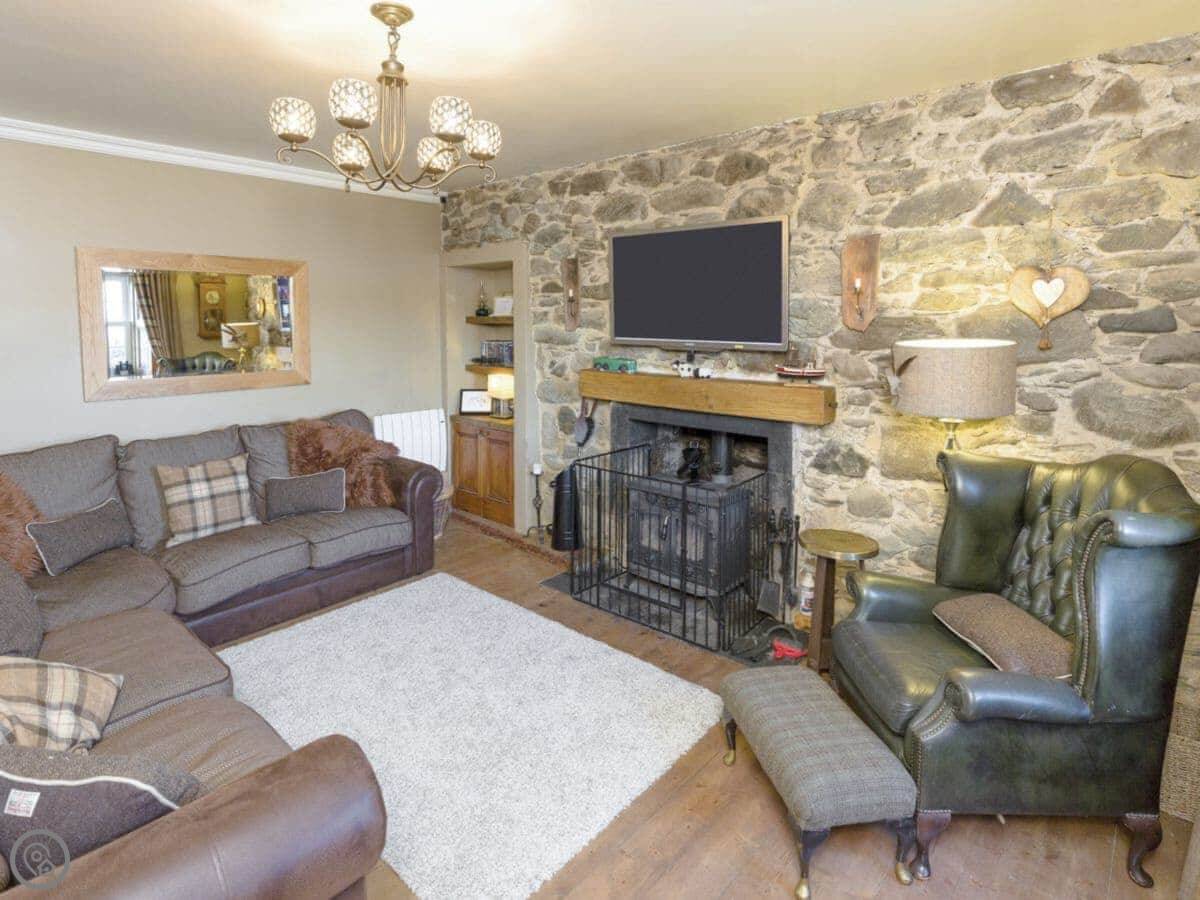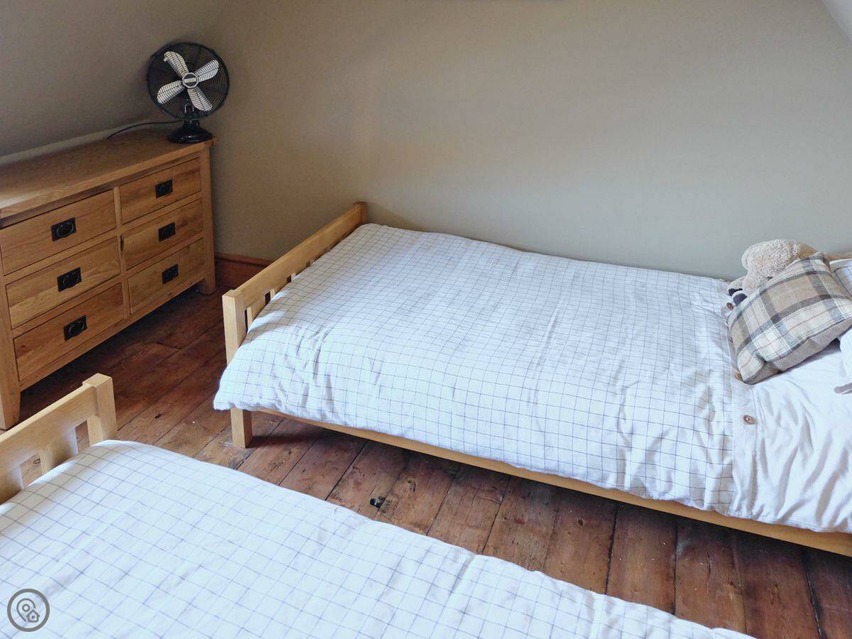 It sleeps four. Two bedrooms, one bathroom. It's a 4 Star place, which means it's comfortable and well looked after. It's an old listed building, so the walls are stone, there's wood panelling, and the staircase is the original cast iron and wood one. It's fairly steep, just so you know.