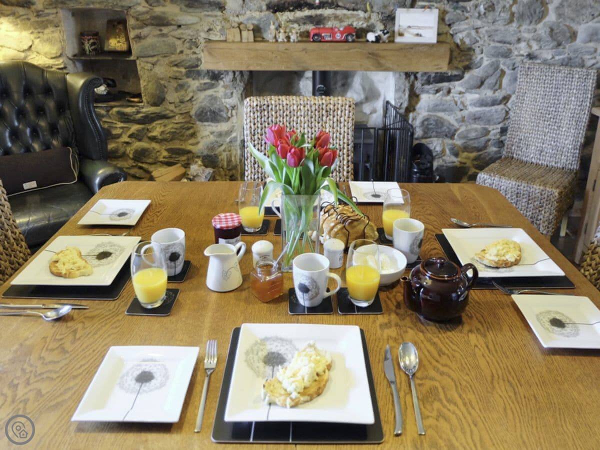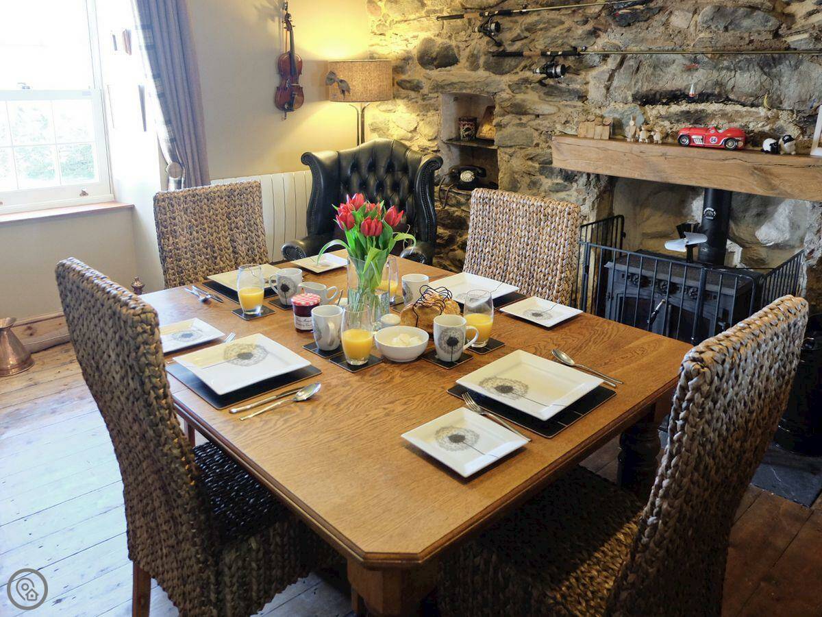 What's here: it's got a wood burning stove, a dishwasher, a washing machine, WiFi, and TV. The garden is enclosed. There's a cot and highchair if you need them. Bedding and towels are included. You can bring two dogs.