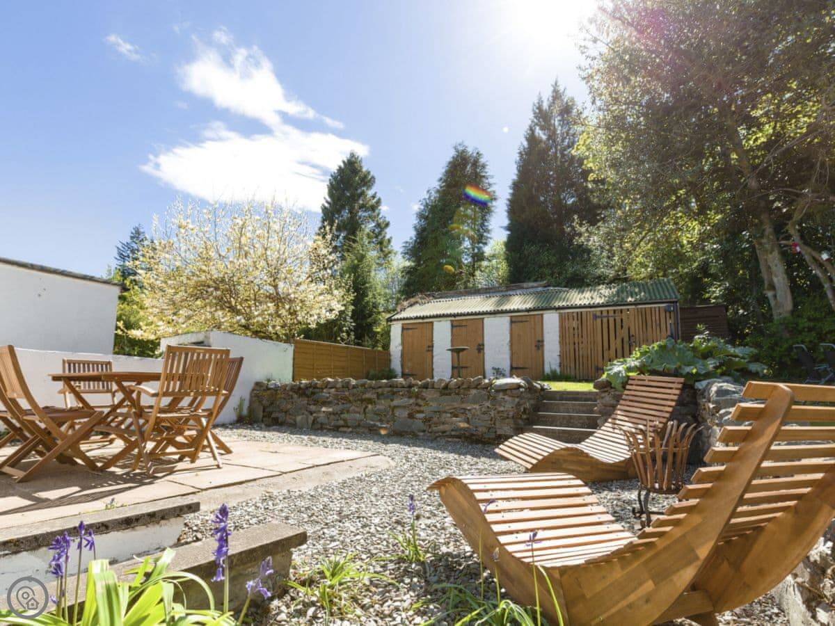 Fern Cottage is in Ardentinny, right on the shore of Loch Long. It's a small, quiet place. You're basically in the Argyll Forest, so you can walk out the door and straight onto the tracks.