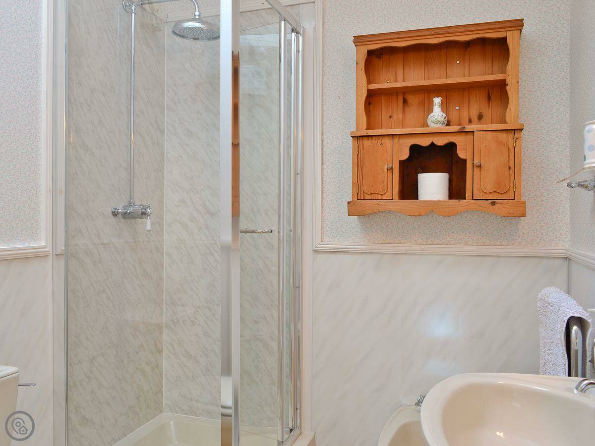It's got a 3 Star rating. That means it's clean and comfortable but not luxury. One bedroom, one bathroom with a shower. It's open plan inside, with a woodburning stove for cooler nights. There's parking right outside. The washing machine and all the bedding and towels are there.