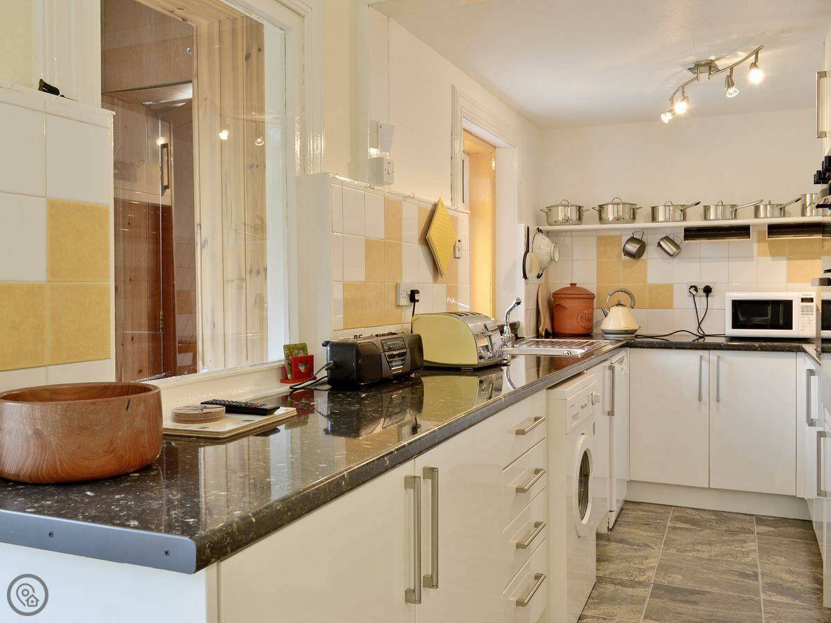 Inside, there's a washing machine and a dishwasher. The garden is enclosed, which is handy if you're bringing dogs. We accept up to two. Towels and bedding are included. There's a cot and a highchair if you need them. Parking is right there.