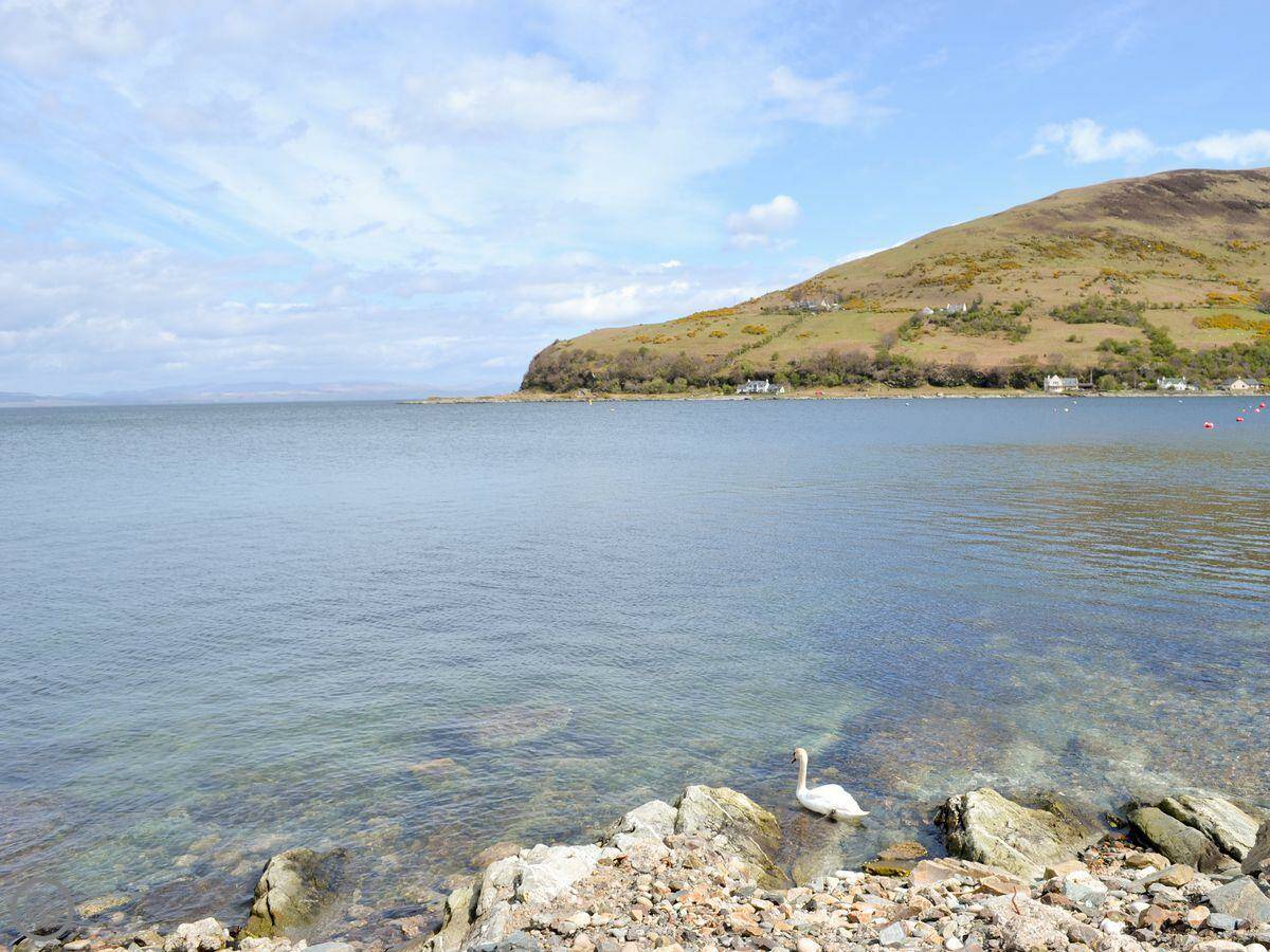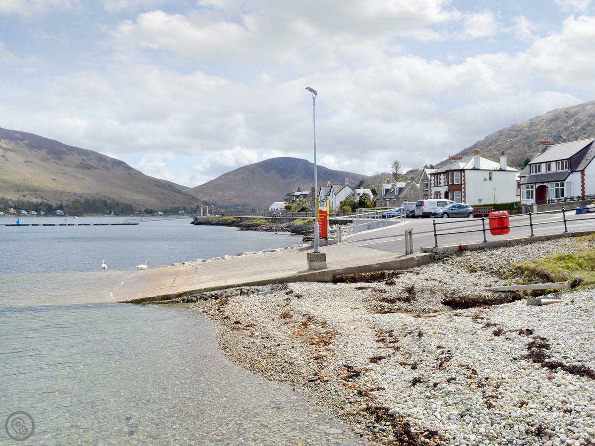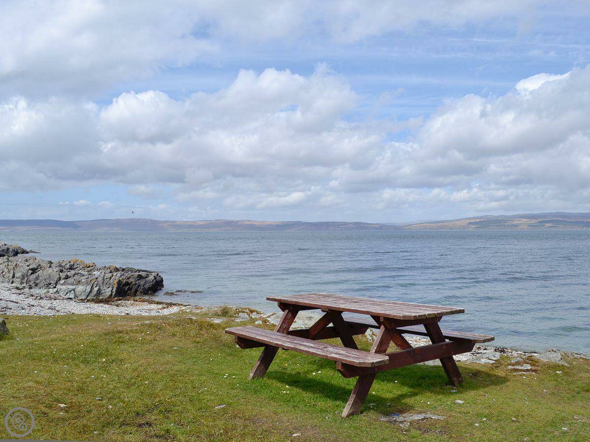 You're basically on the shore. The beach is about 50 yards away, just shingle. The local pub and the distillery restaurant are a few minutes' walk. For a bigger shop, you'd need to drive to Brodick.