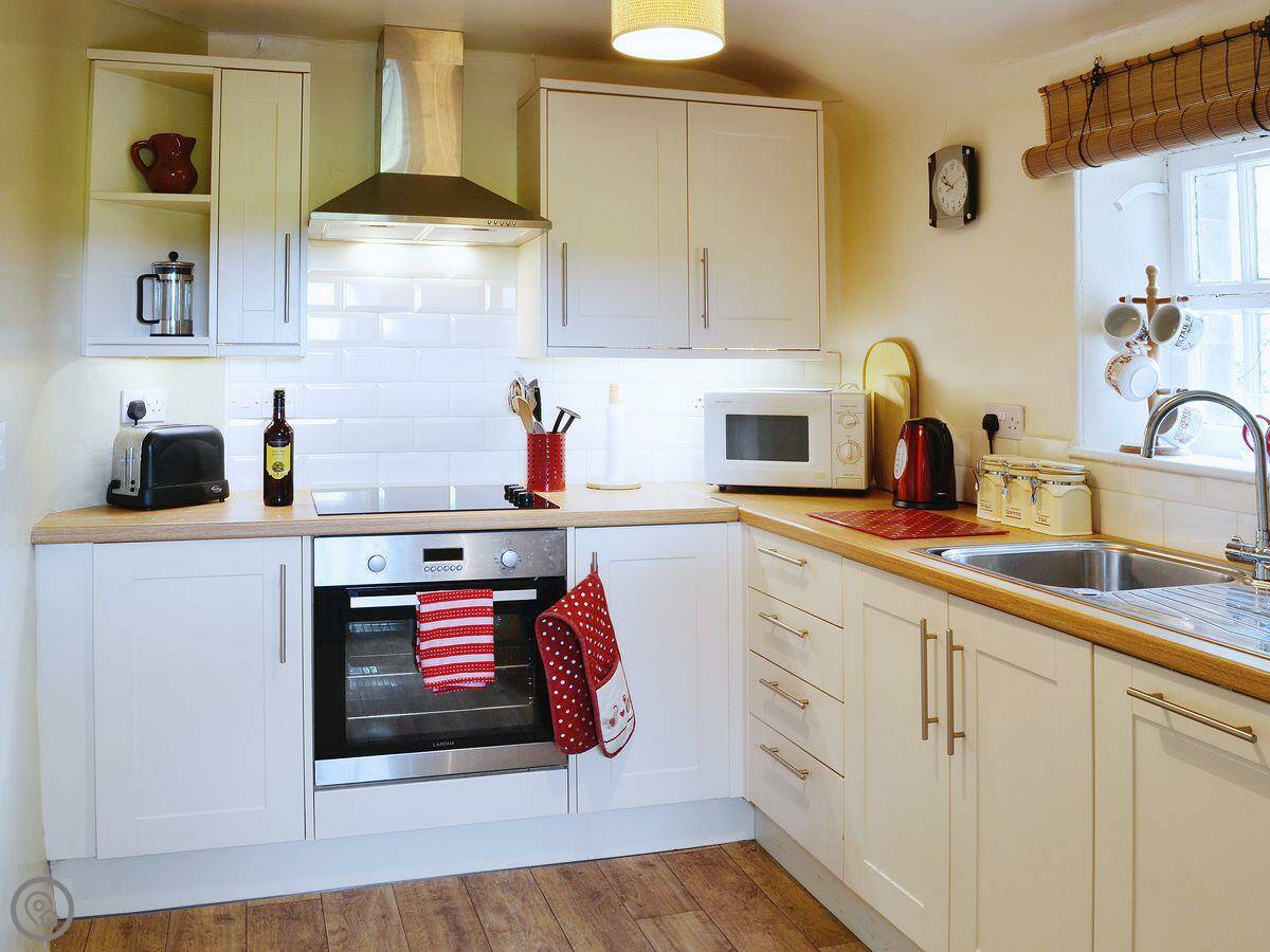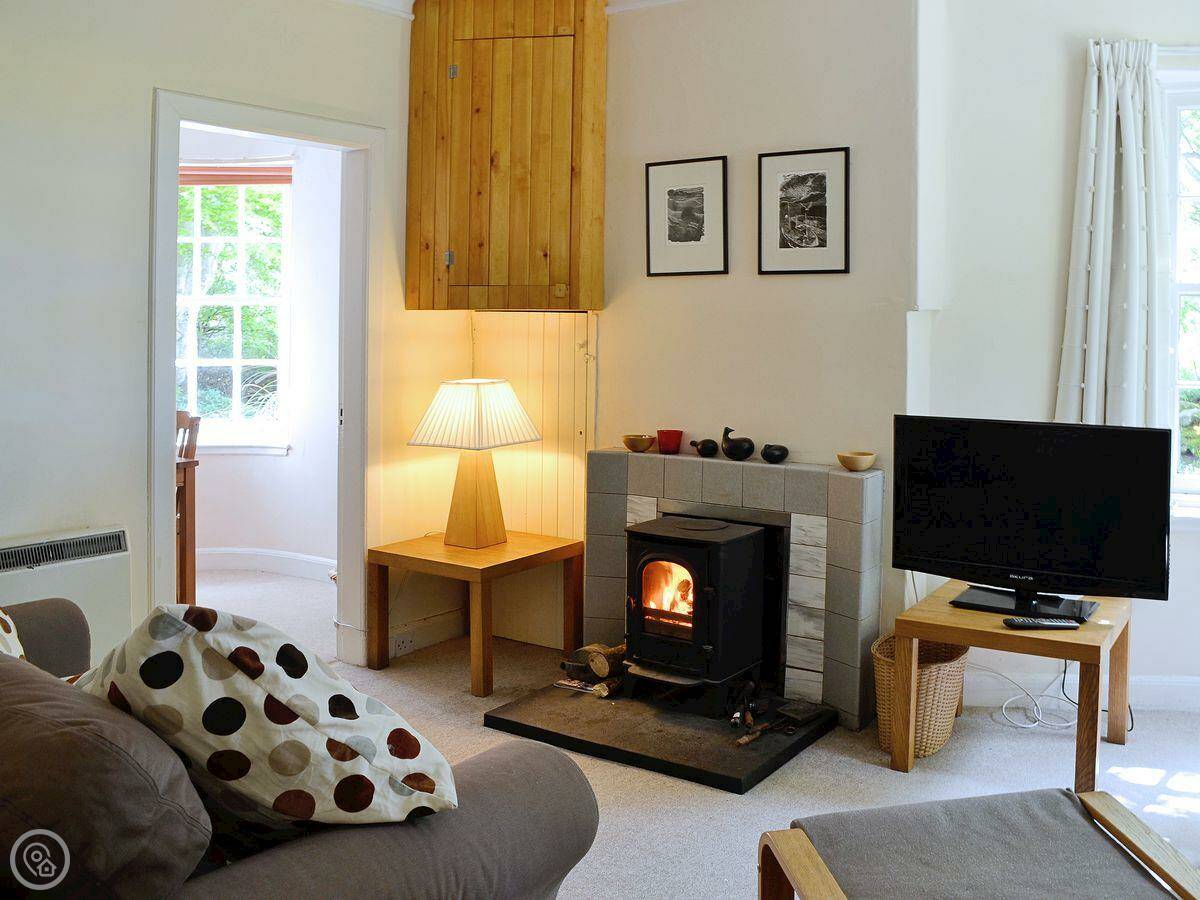 It sleeps four in two bedrooms. There's one bathroom. The rating is 3 Star, so it's comfortable but not luxurious. Everything is on the ground floor, which is handy. It's got a wood burner in the living room, which is nice when it's cold. There's a dishwasher and a TV. The garden is yours to use.