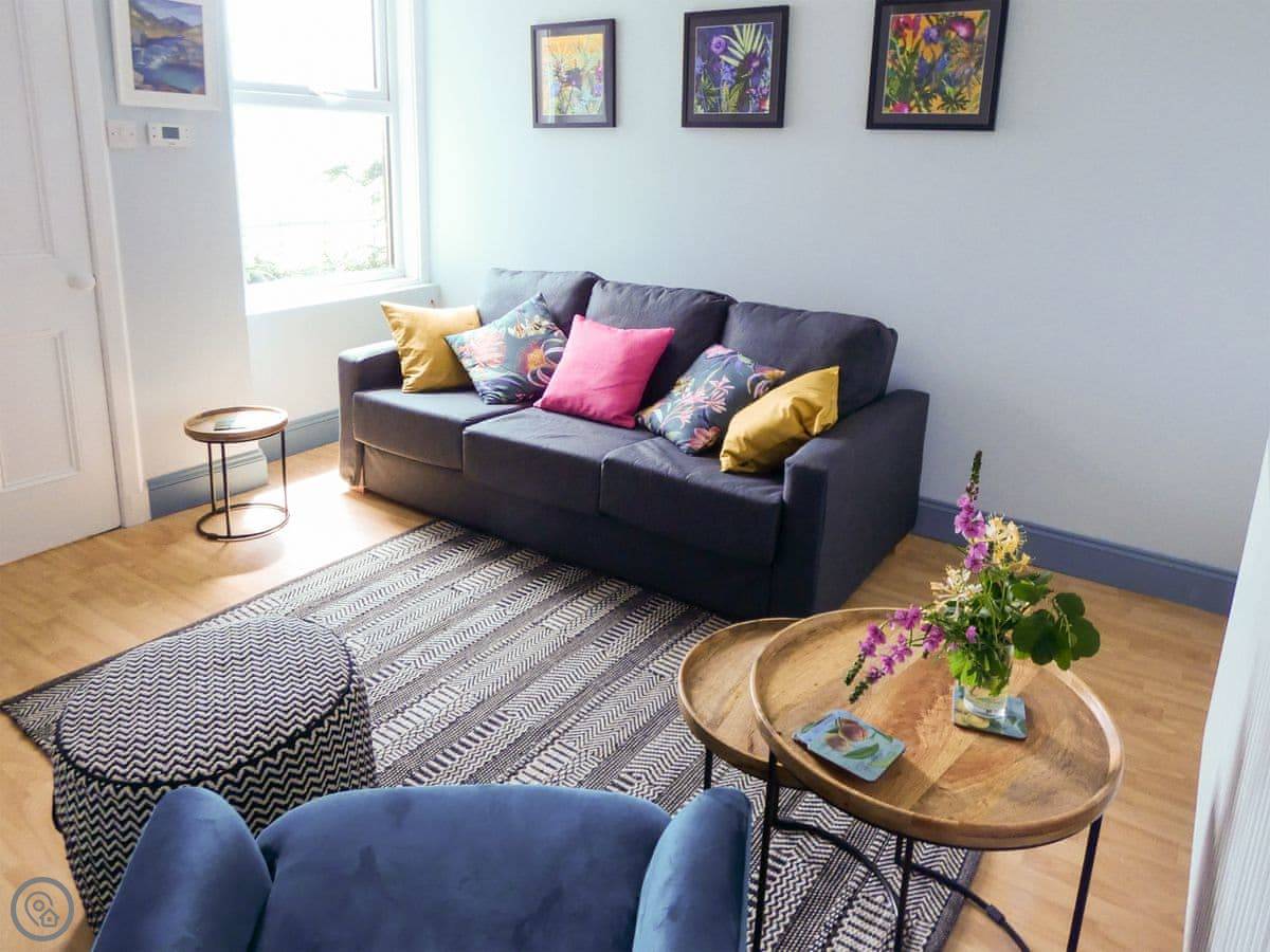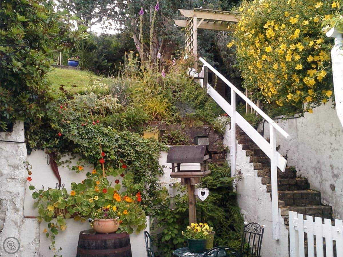 You can see the village bay from here, full of boats. There's a hilly garden out the back. If you walk up to the top, you get a good view over the whole bay. Seals are often on the rocks.