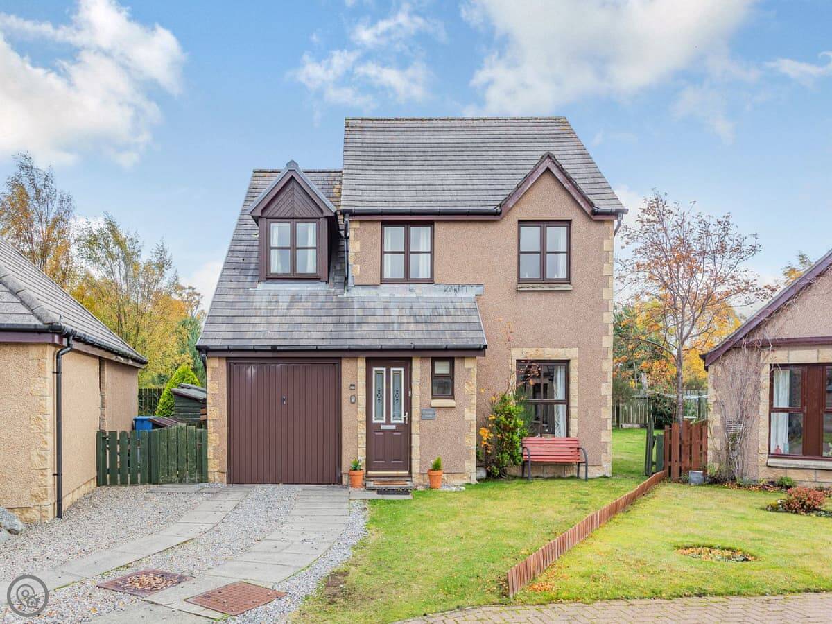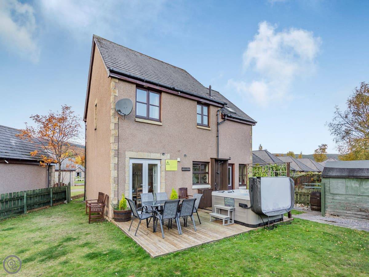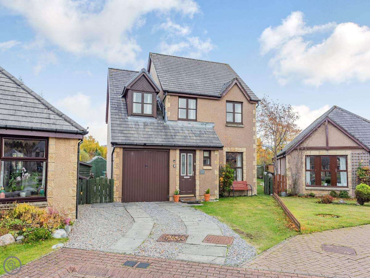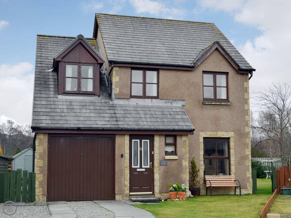 Cairnie View is in Aviemore, up near the top end of town. It's a detached house on a quiet cul-de-sac. The back garden looks straight out at the Cairngorms, which is nice.