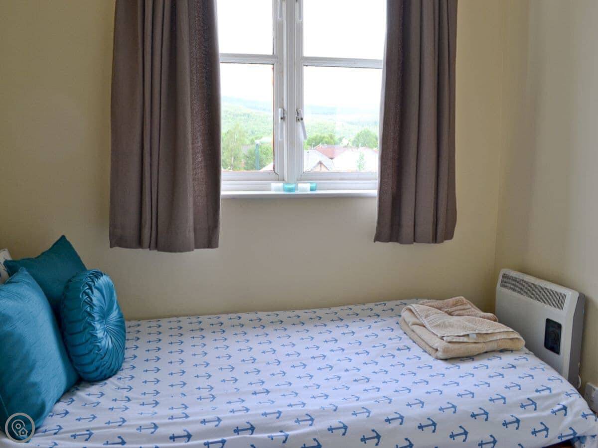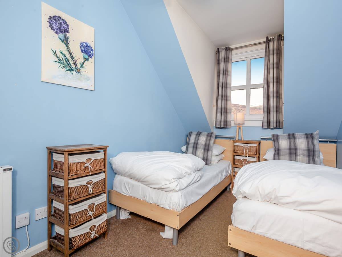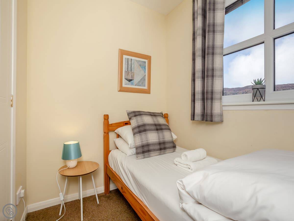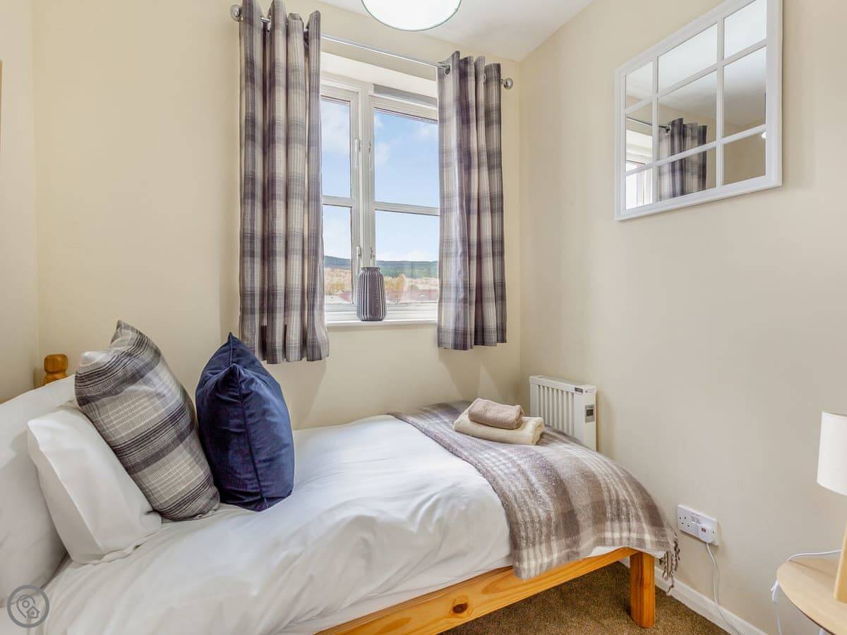Cairnie View is in Aviemore, up near the top end of town. It's a detached house on a quiet cul-de-sac. The back garden looks straight out at the Cairngorms, which is nice.