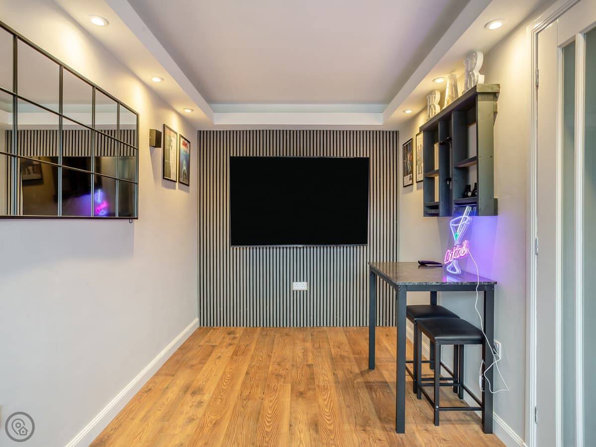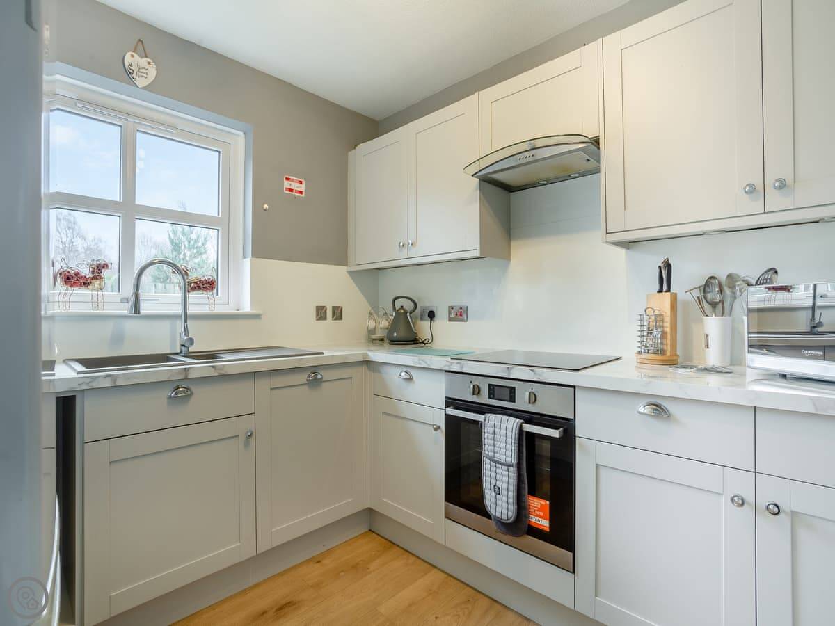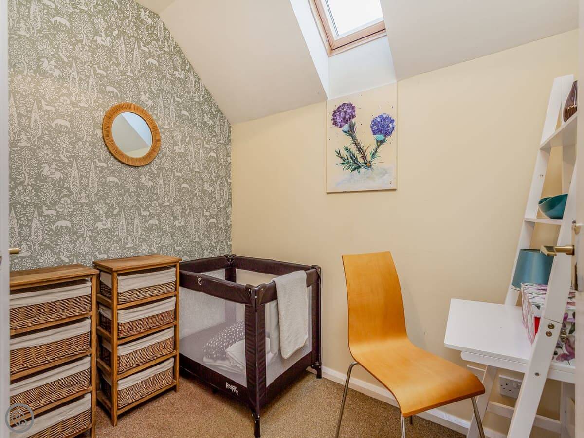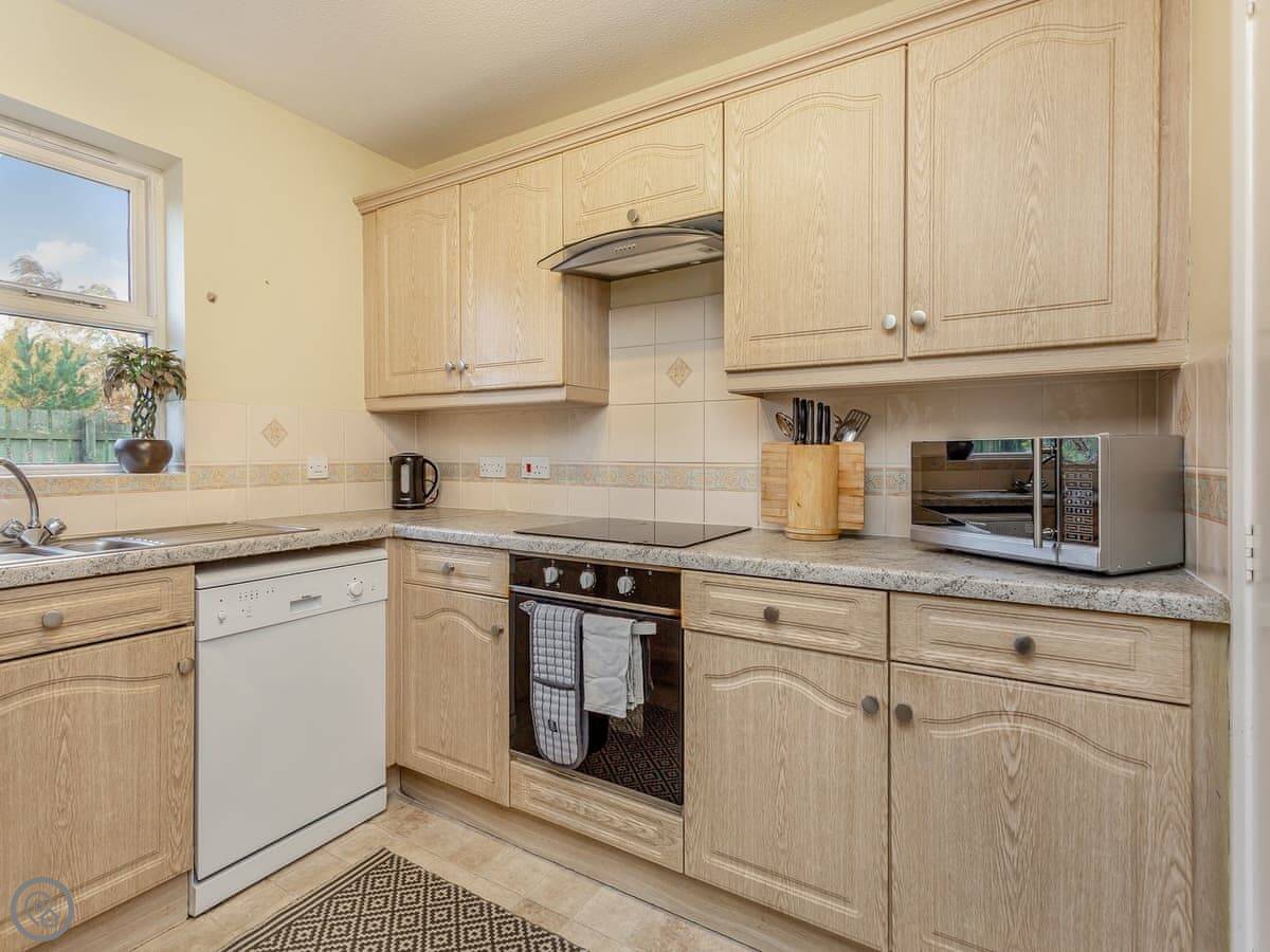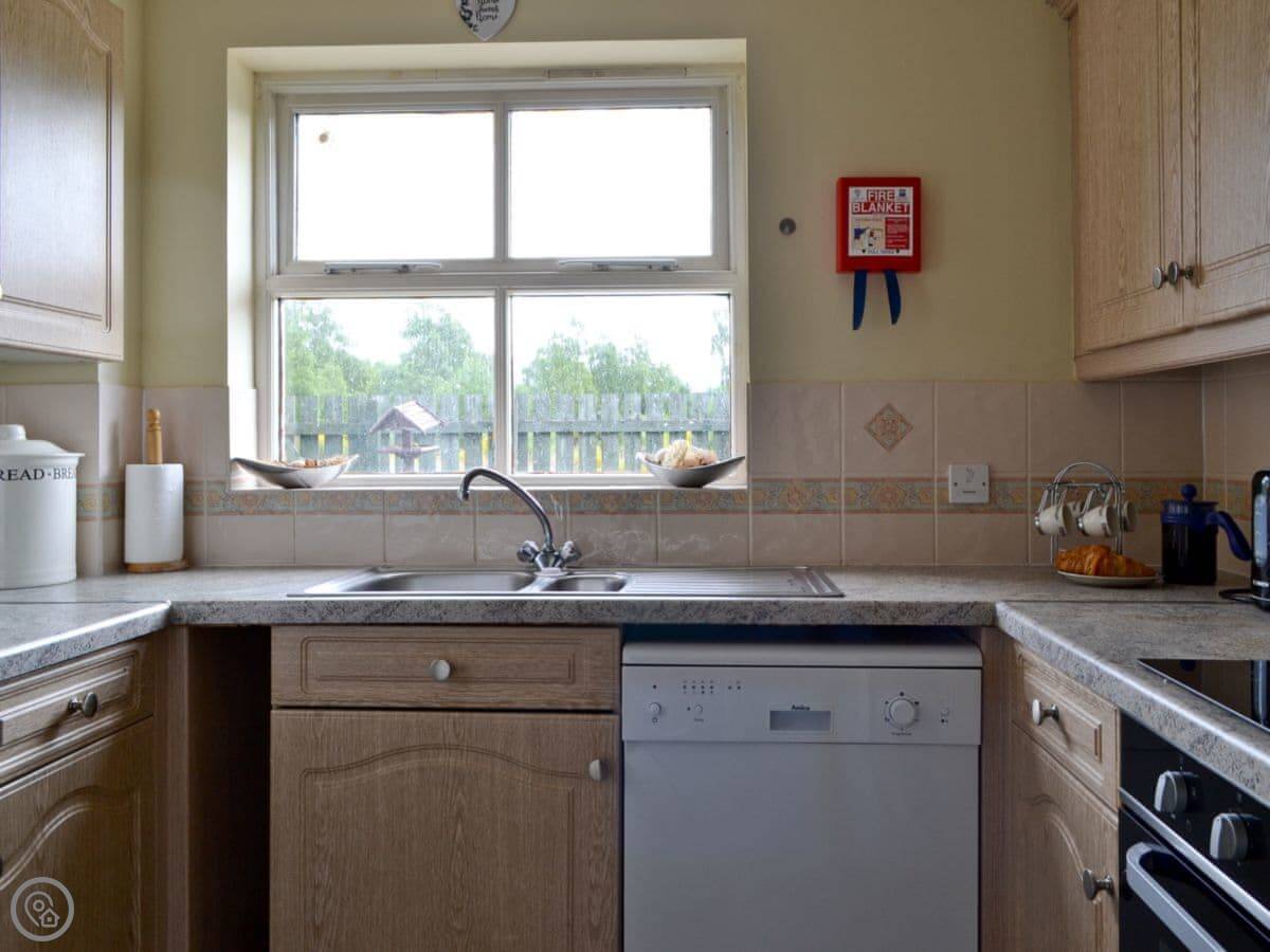 For facilities: it's got parking on the drive, an enclosed garden with a barbecue, a washing machine, dishwasher, and WiFi. Bedding and towels are included. There's a cot and highchair if you need them. One well-behaved dog is welcome.