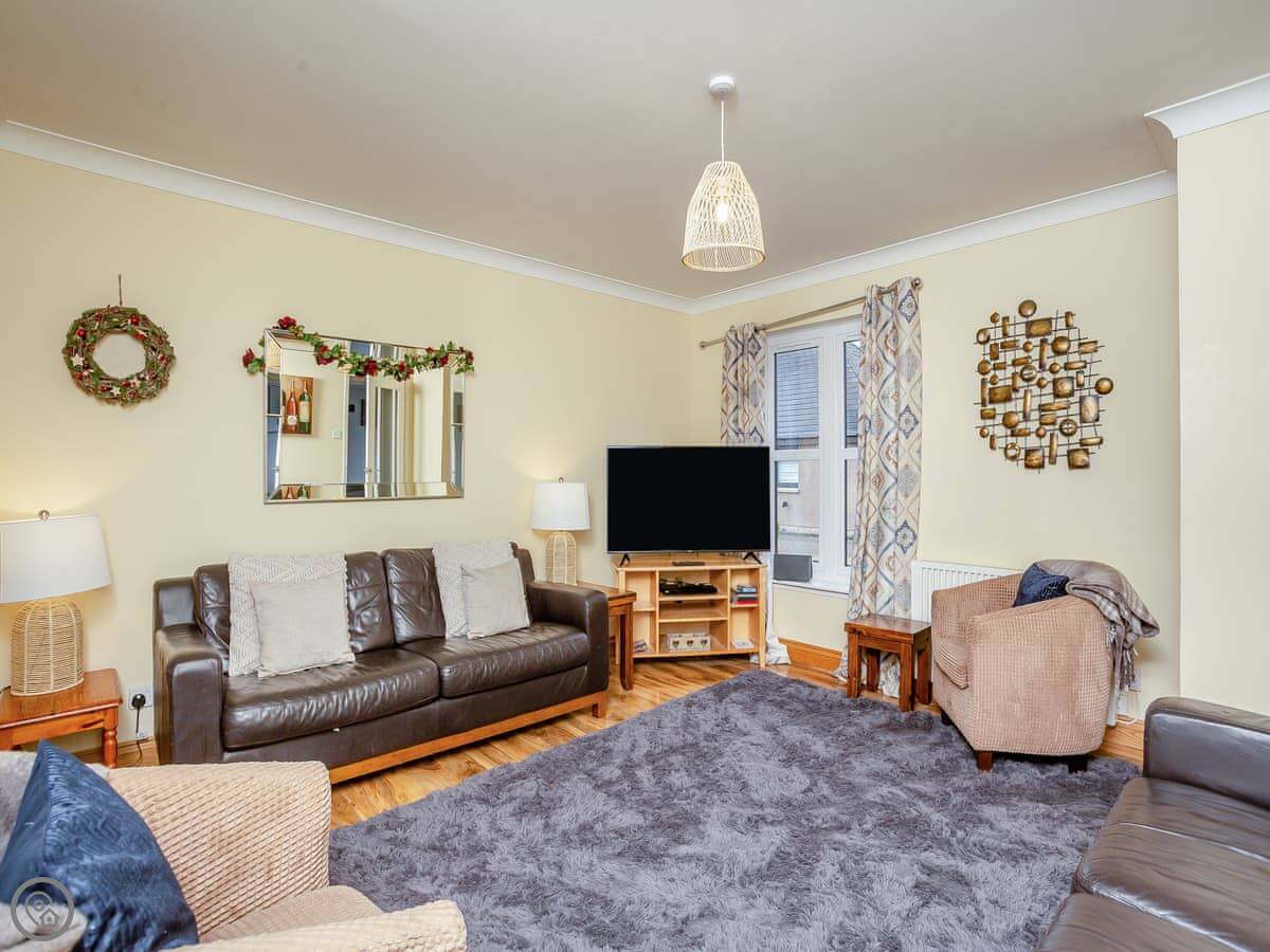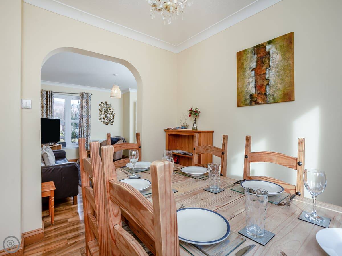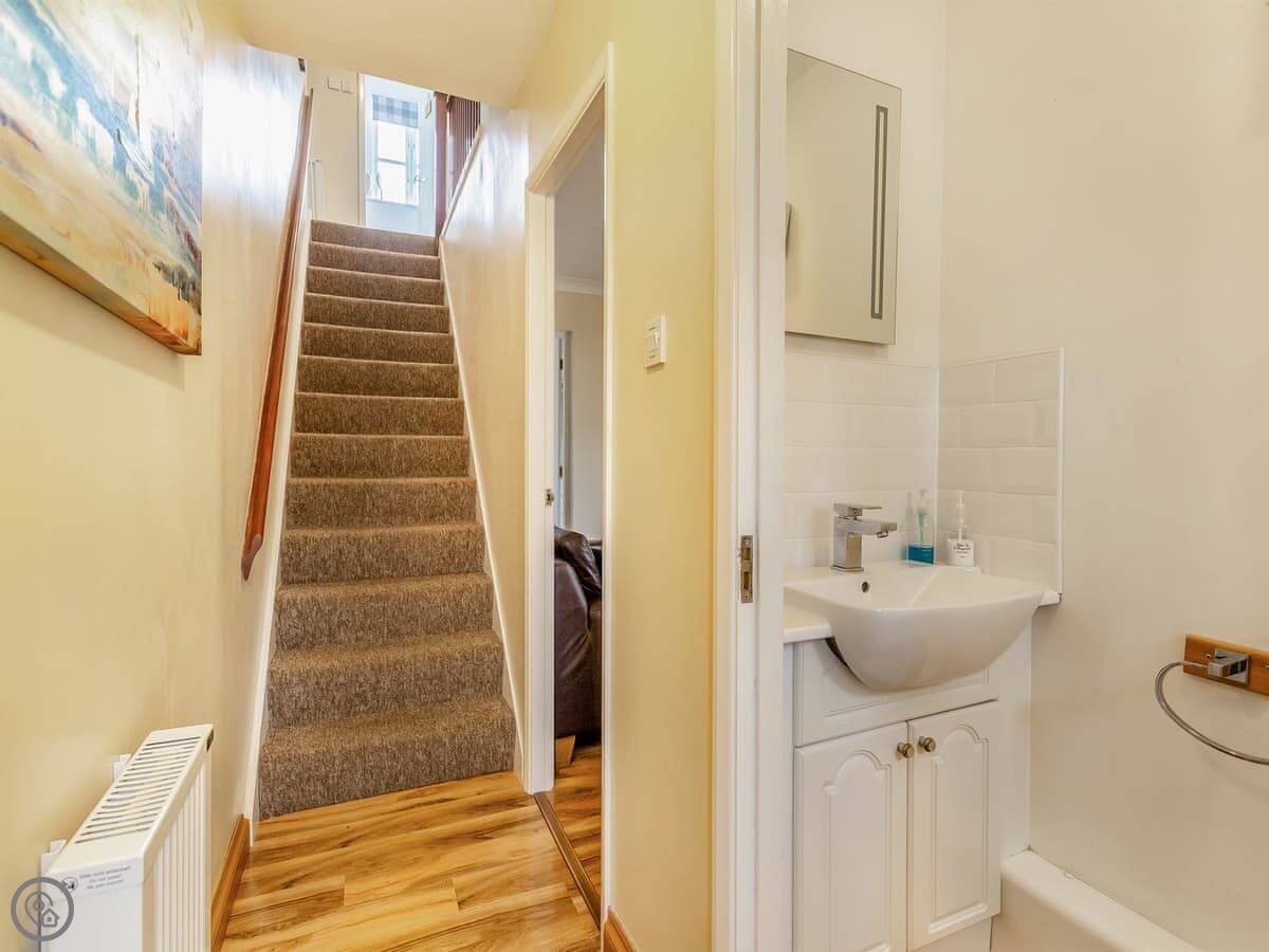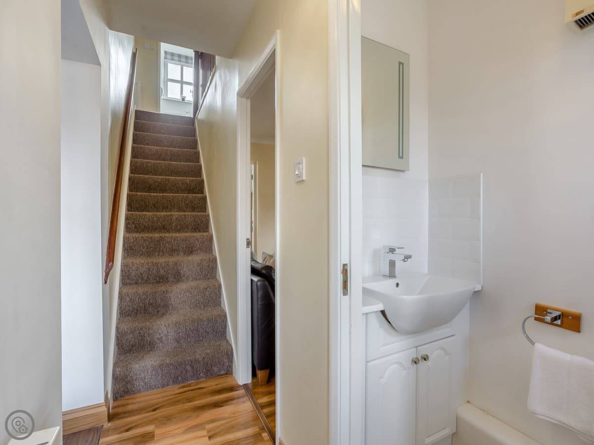 It sleeps seven, across four bedrooms. There are two bathrooms. It's got a 3 Star rating. It's clean and comfortable. It's a family house, nothing too fancy. The stairs are a standard house staircase.