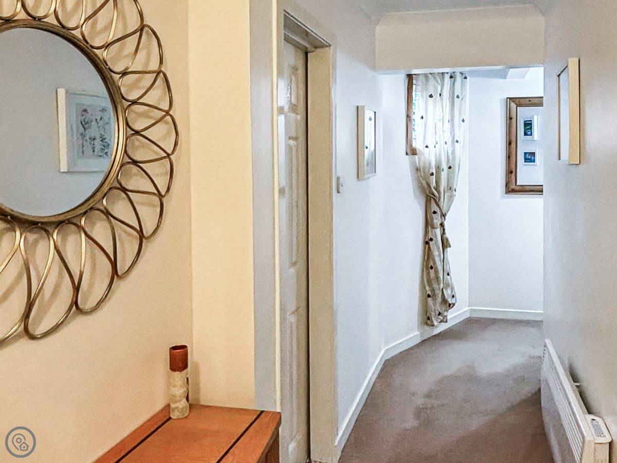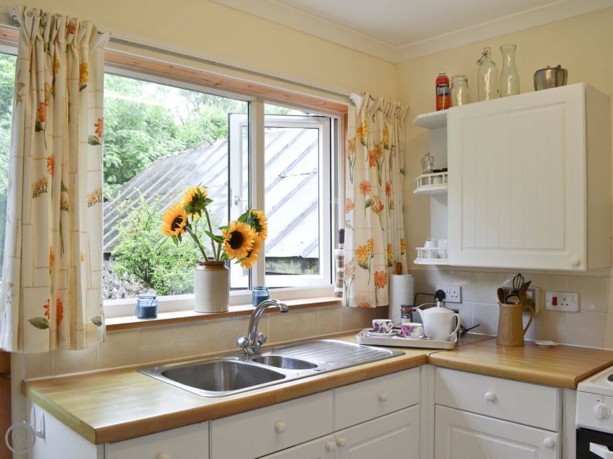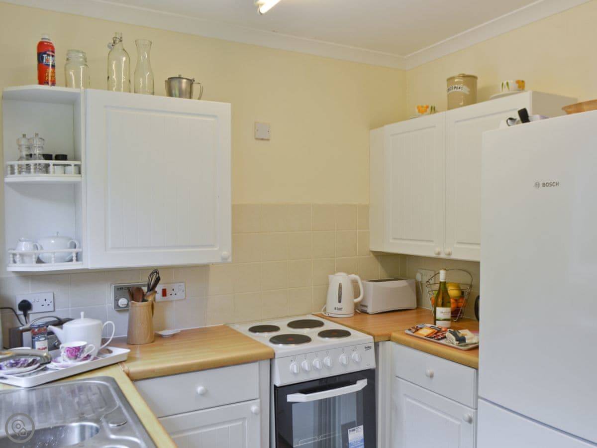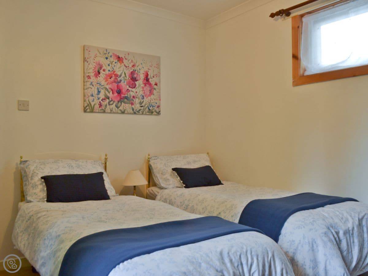 The house sleeps four. Two bedrooms and one bathroom. It has a 3 Star rating, so it's comfortable and clean but not luxurious. It's open plan downstairs, which is good if you're all in together.