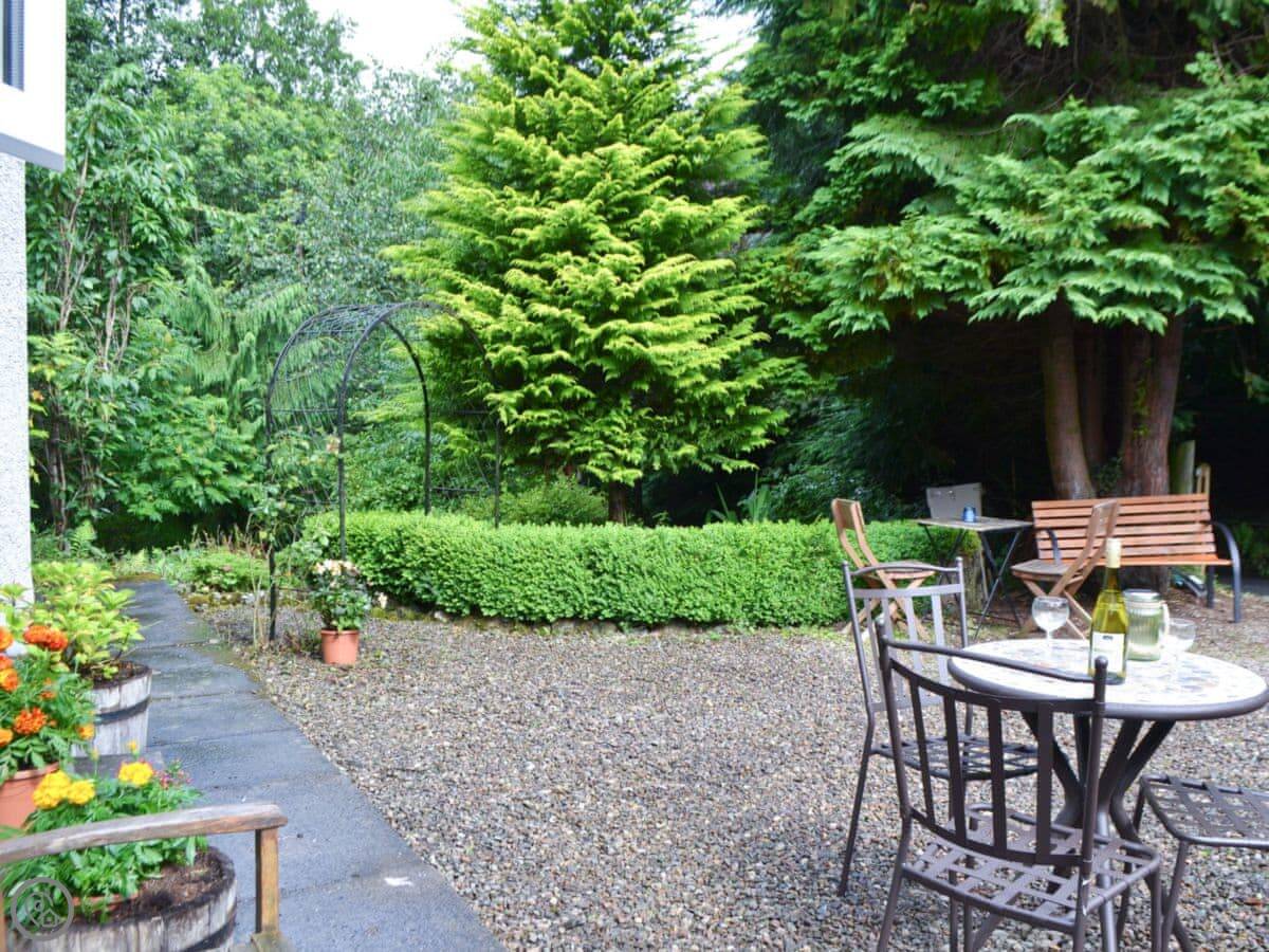 The garden is nice. There's a stream at the bottom and a couple of different places to sit, so you can follow the sun. It's peaceful.