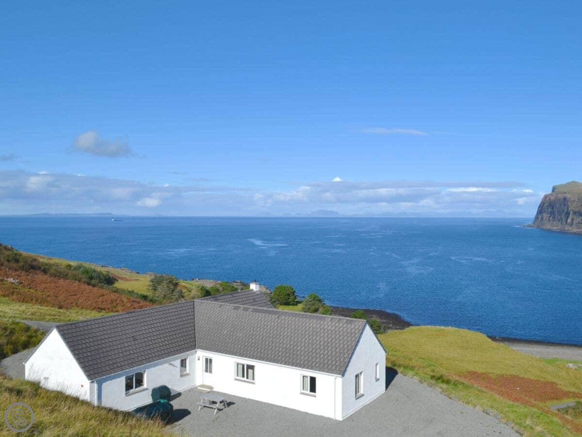 This bright, comfortable detached holiday property is located in the crofting community of Milovaig, and enjoys panoramic views over Loch Pooltiel and onto the Outer Hebrides. This peaceful and tranquil place offers a truly ‘get away from it all’ experience, and it offers an ideal base for exploring the Isle of Skye. Neist Point is only a short drive away, where you can enjoy a walk down to the lighthouse or fishing along the shoreline.