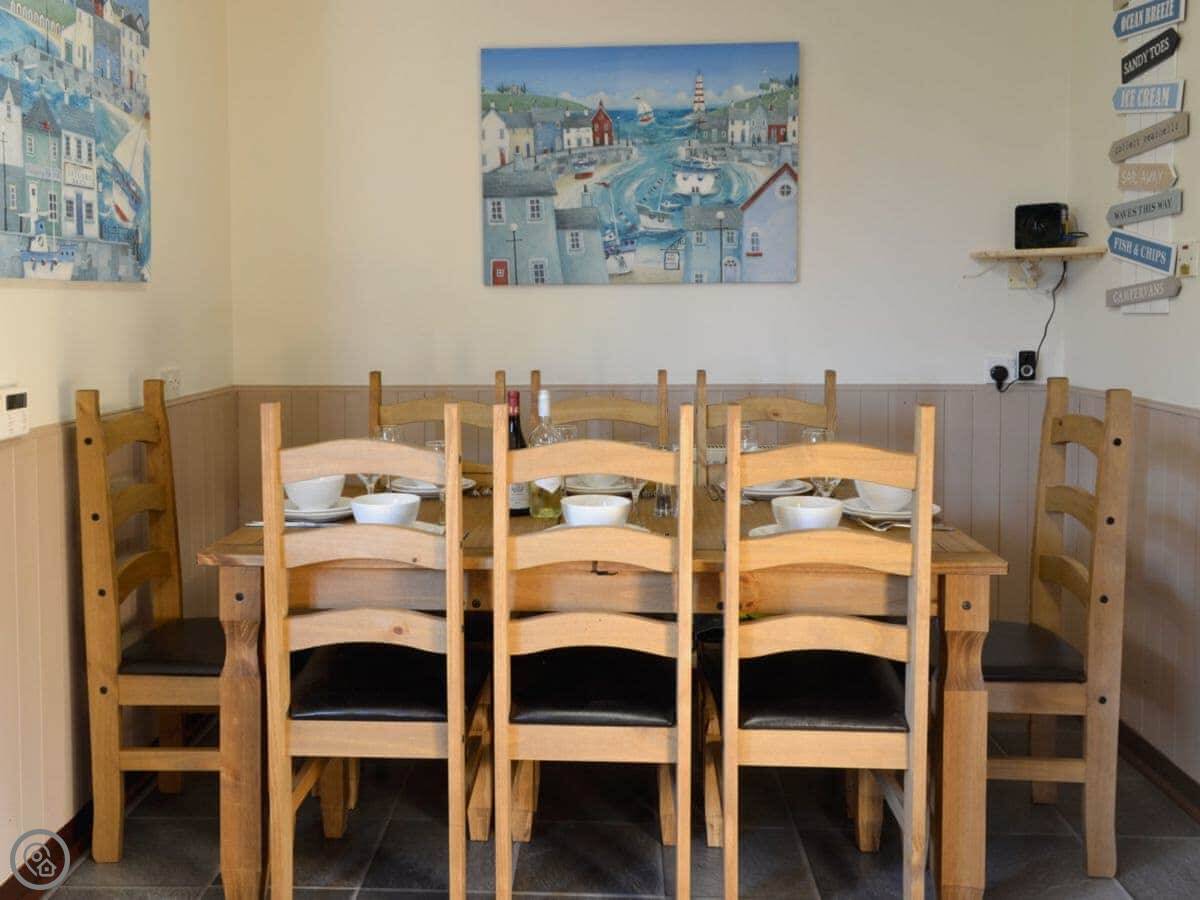 It sleeps eight. Four bedrooms and two bathrooms. It's a 3 Star place, so it's clean and functional rather than luxury. The garden's enclosed, which is handy if you've got dogs or kids.