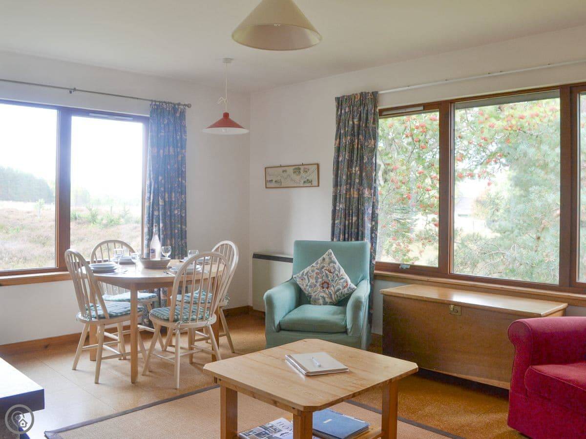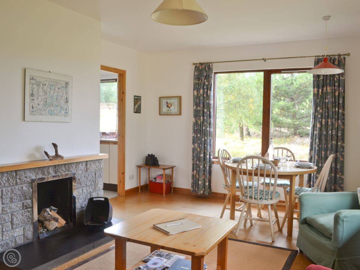 Kingussie is a few miles away. It's got shops, pubs, and places to eat. Loch Insh is close by if you want to do water sports. Aviemore is a bit further, maybe twenty minutes by car, and has more of everything.
