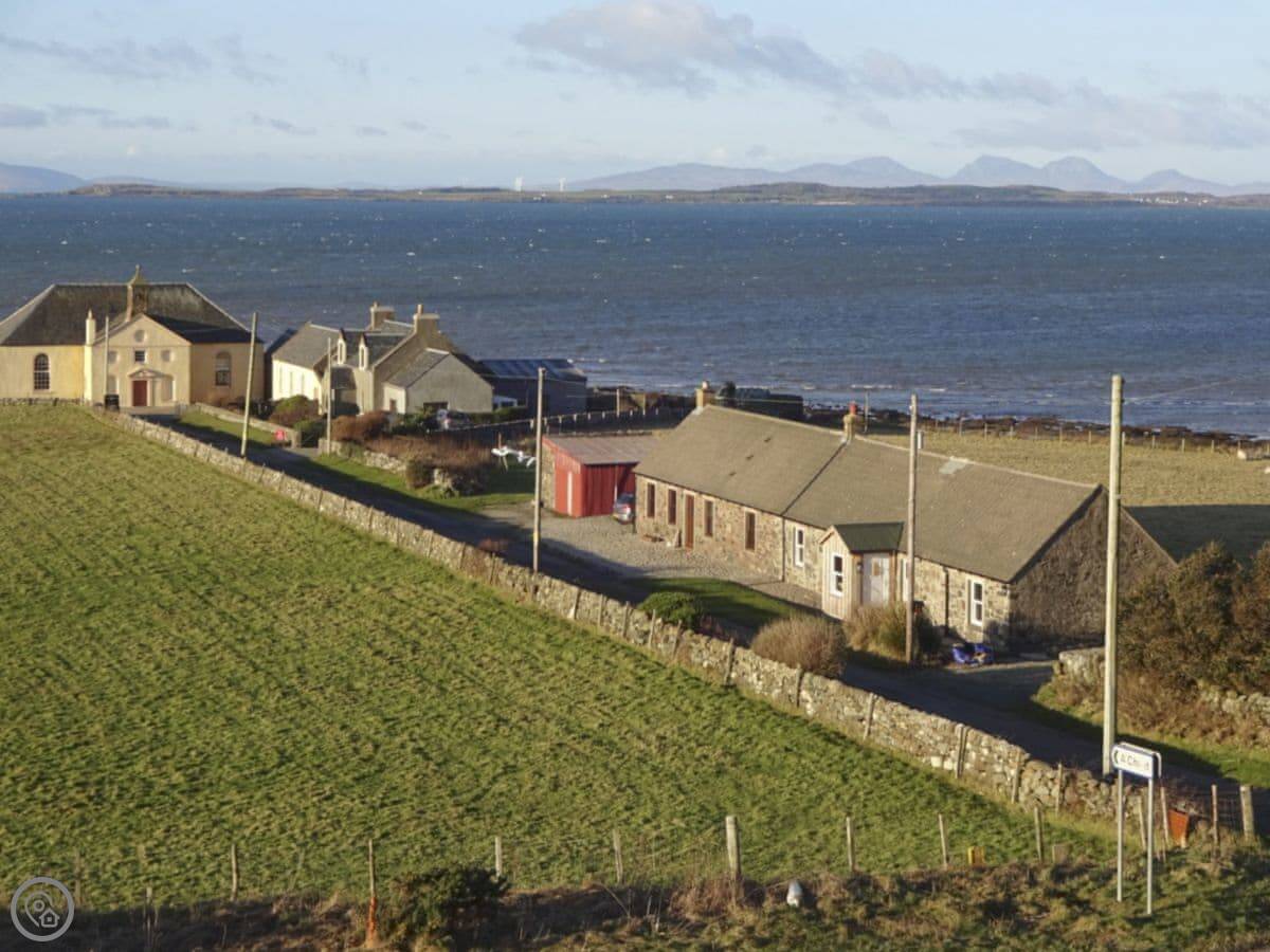 This is Charlie's Cottage, in Muasdale. It's on the west coast of Kintyre. A quiet lane, right by the beach. It's semi-detached and looks out over the sea at the front and the back. You can see the isle of Gigha and, if it's clear, the Paps of Jura.