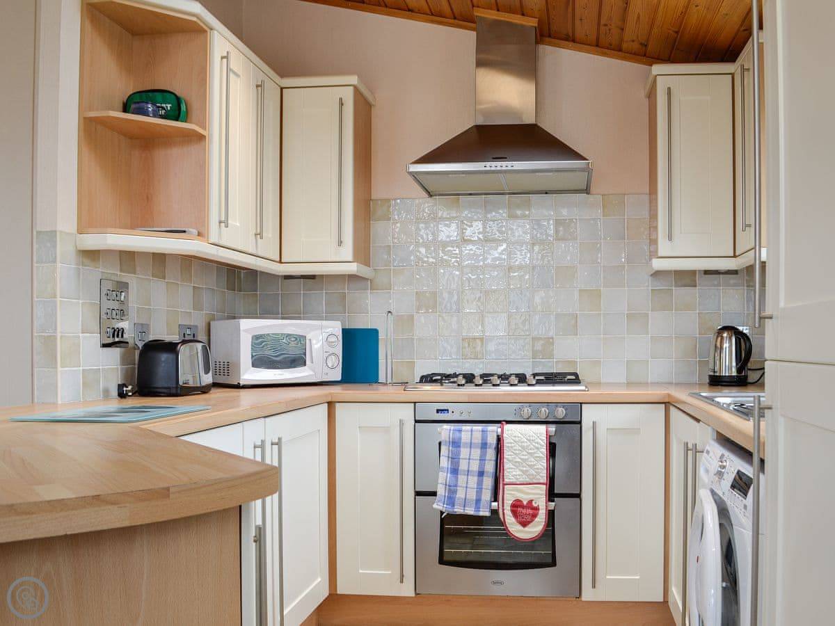 What's here: there's a washing machine, a TV, WiFi. Bedding and towels are included. There's a cot and a highchair if you need them. There's parking right by the lodge. No pets, sorry.