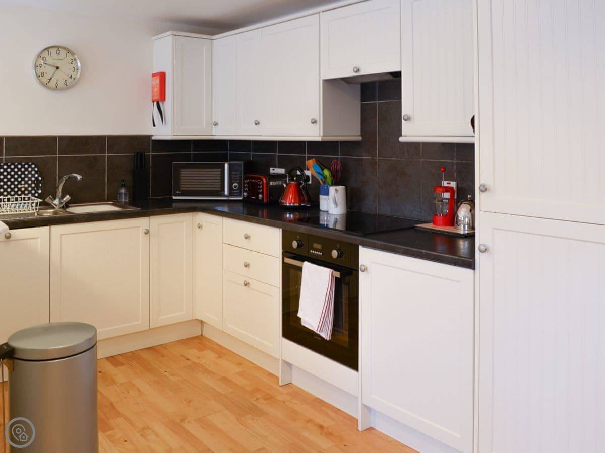 For facilities, you've got Wi-Fi, a TV, washing machine, dishwasher. Bedding and towels are included. There's parking right outside. The garden is enclosed. We accept up to two dogs.
