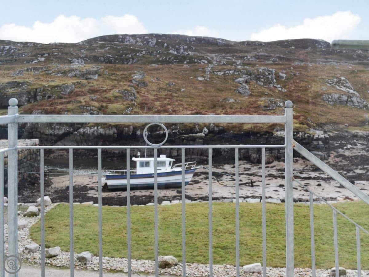 The beach is about 200 yards away. It's a lovely curve of white sand. You'll often see seals in the harbour. We've had otters around the rocks, and deer on the estate. Eagles fly over sometimes.