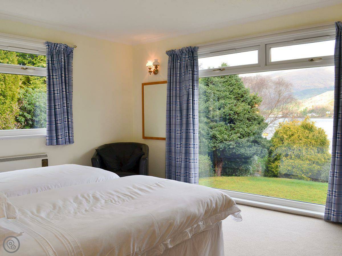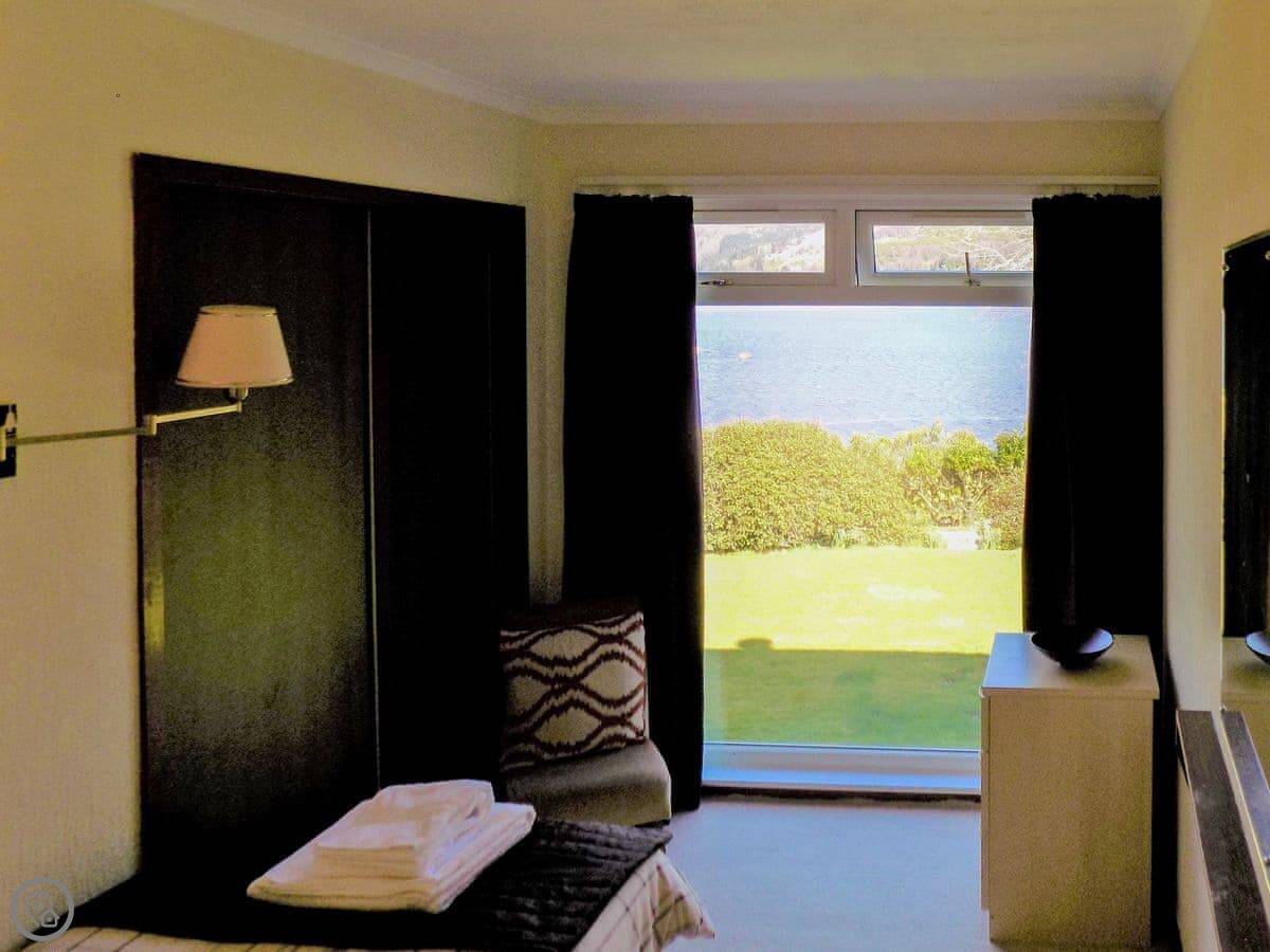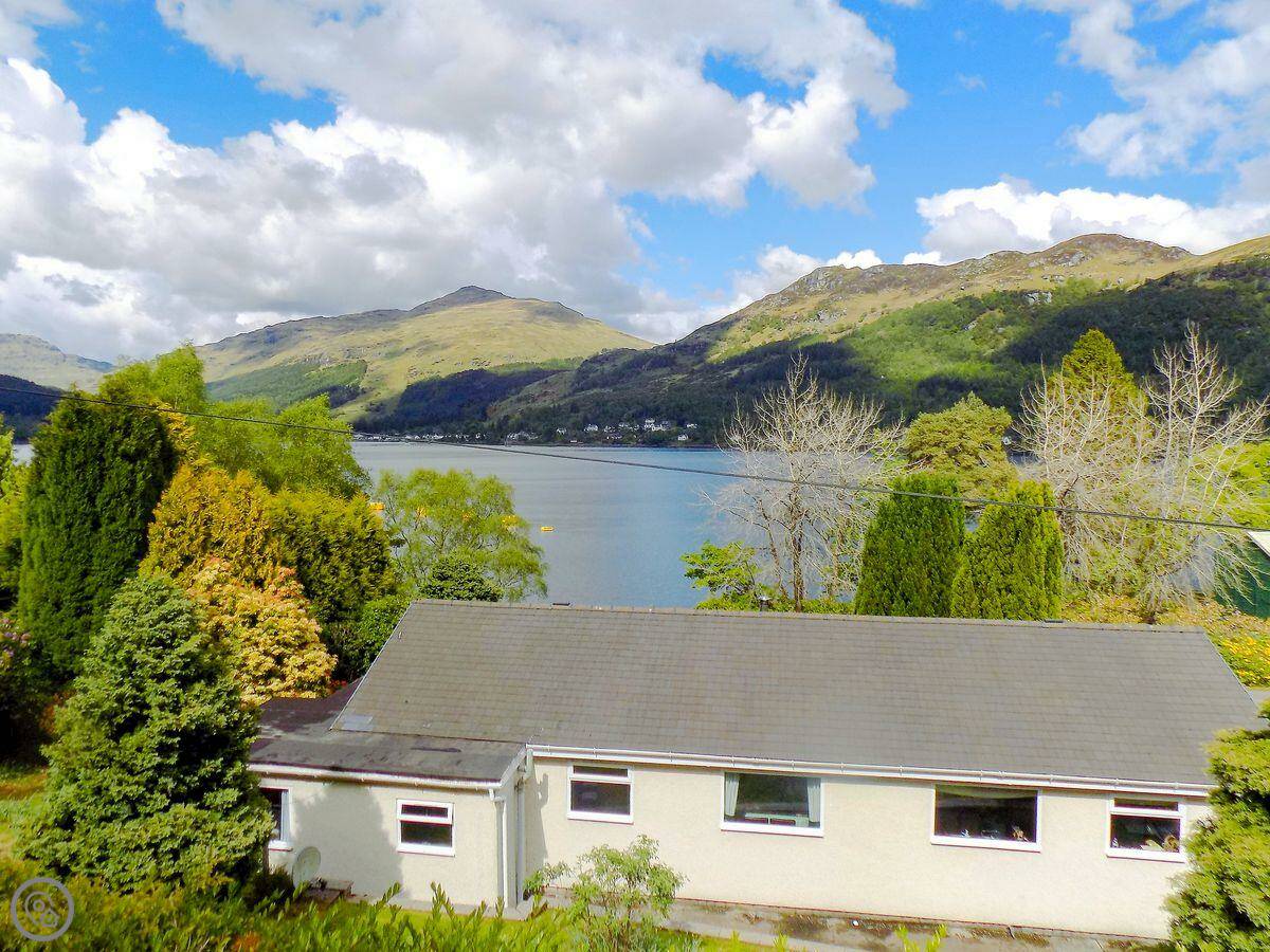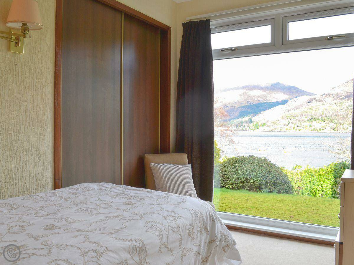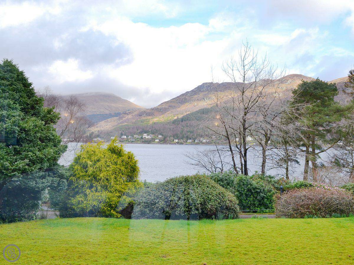It sleeps six in four bedrooms, with two bathrooms. It's got a 4 Star rating. The garden is large and fully enclosed, which is good if you're bringing dogs or if kids are running about. It looks out over the loch and the mountains. You get that view from the living room.