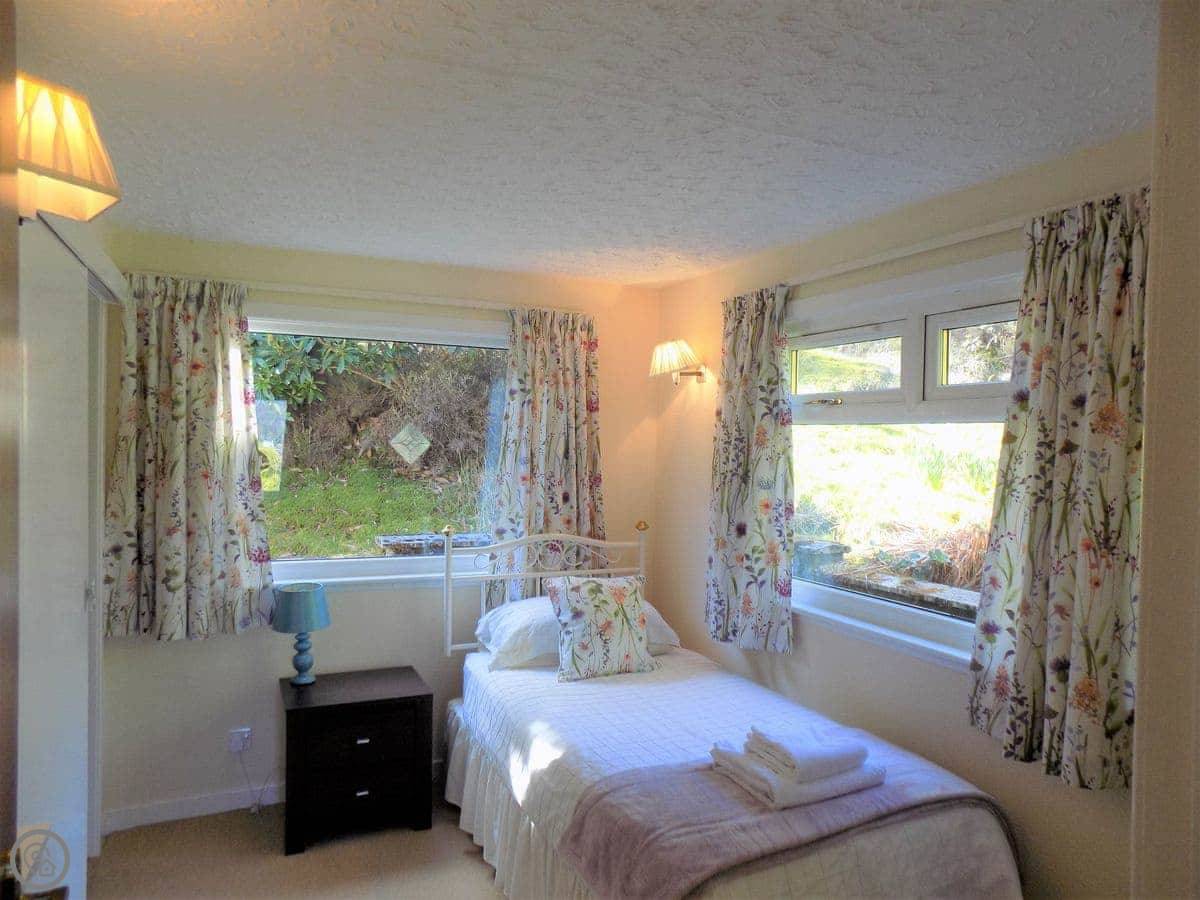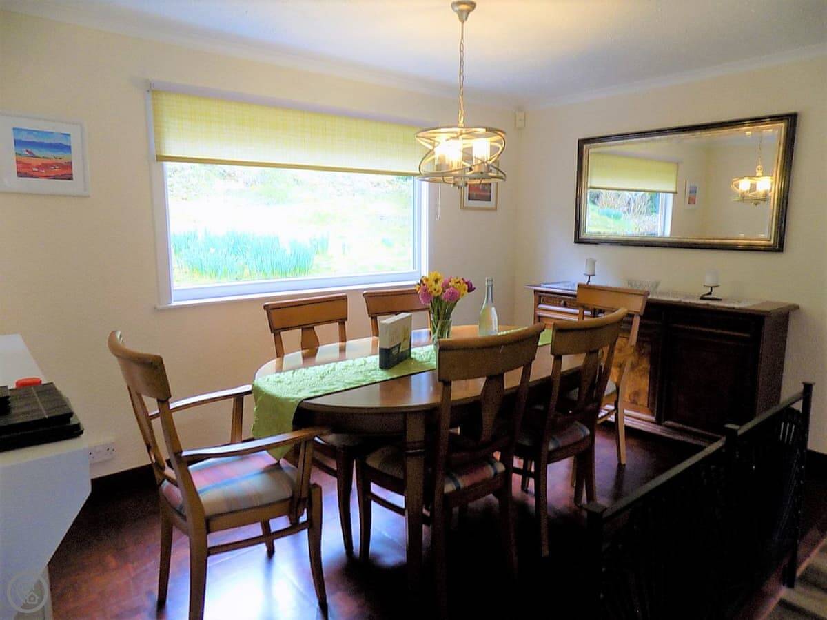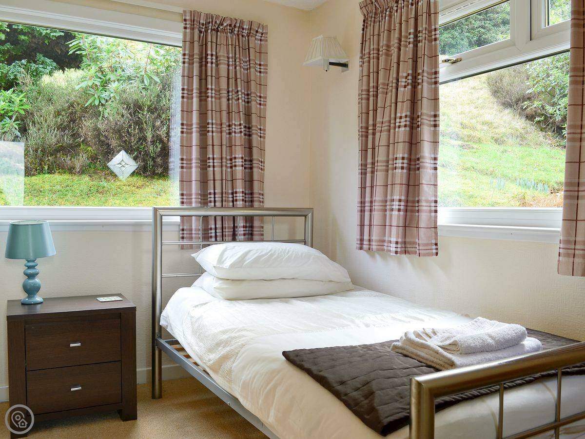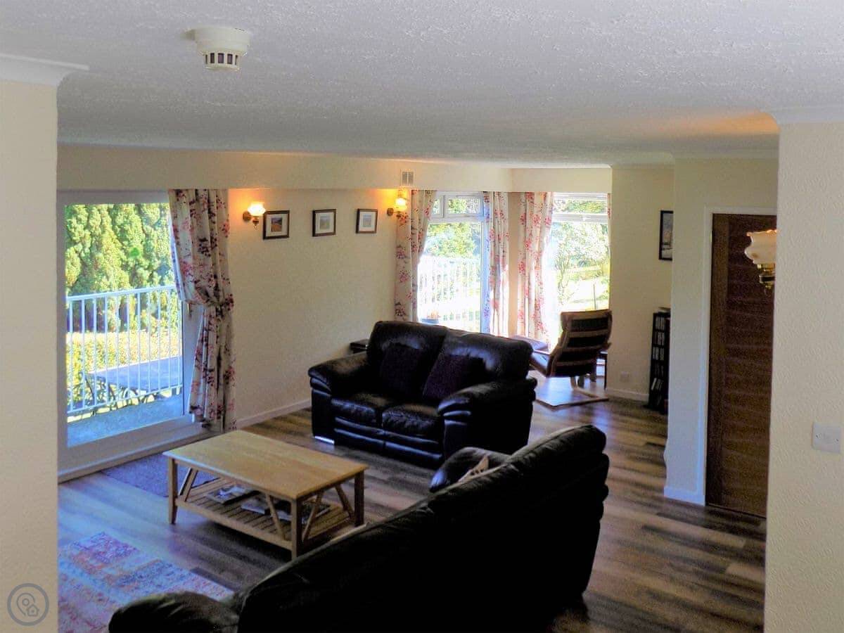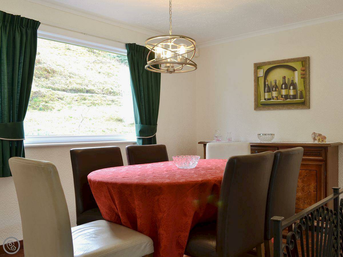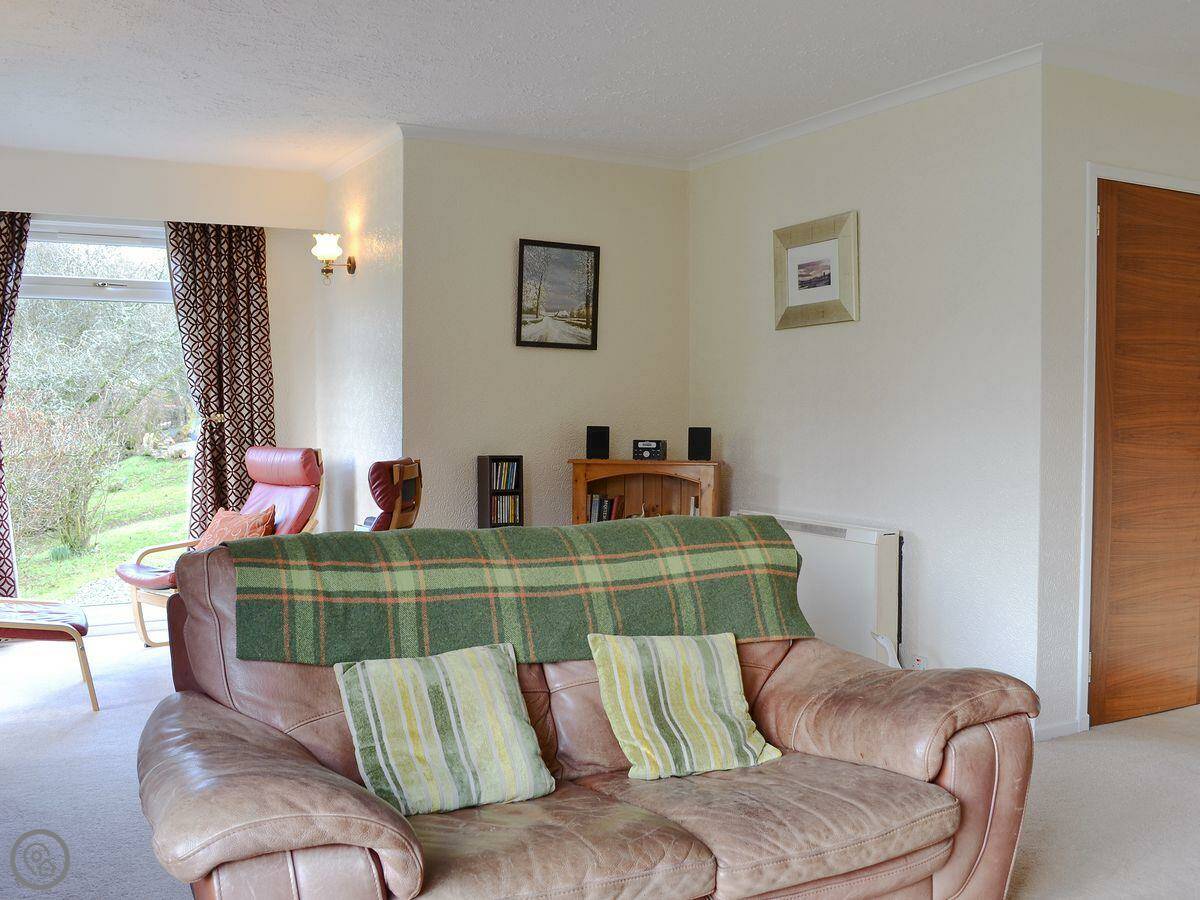 It sleeps six in four bedrooms, with two bathrooms. It's got a 4 Star rating. The garden is large and fully enclosed, which is good if you're bringing dogs or if kids are running about. It looks out over the loch and the mountains. You get that view from the living room.