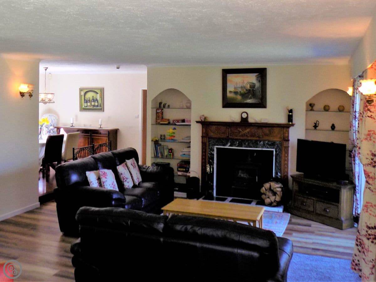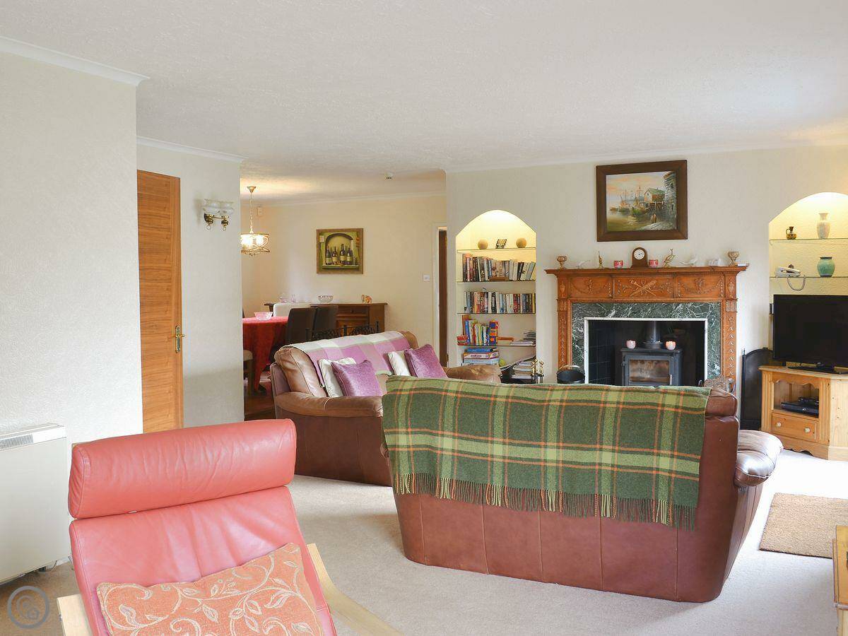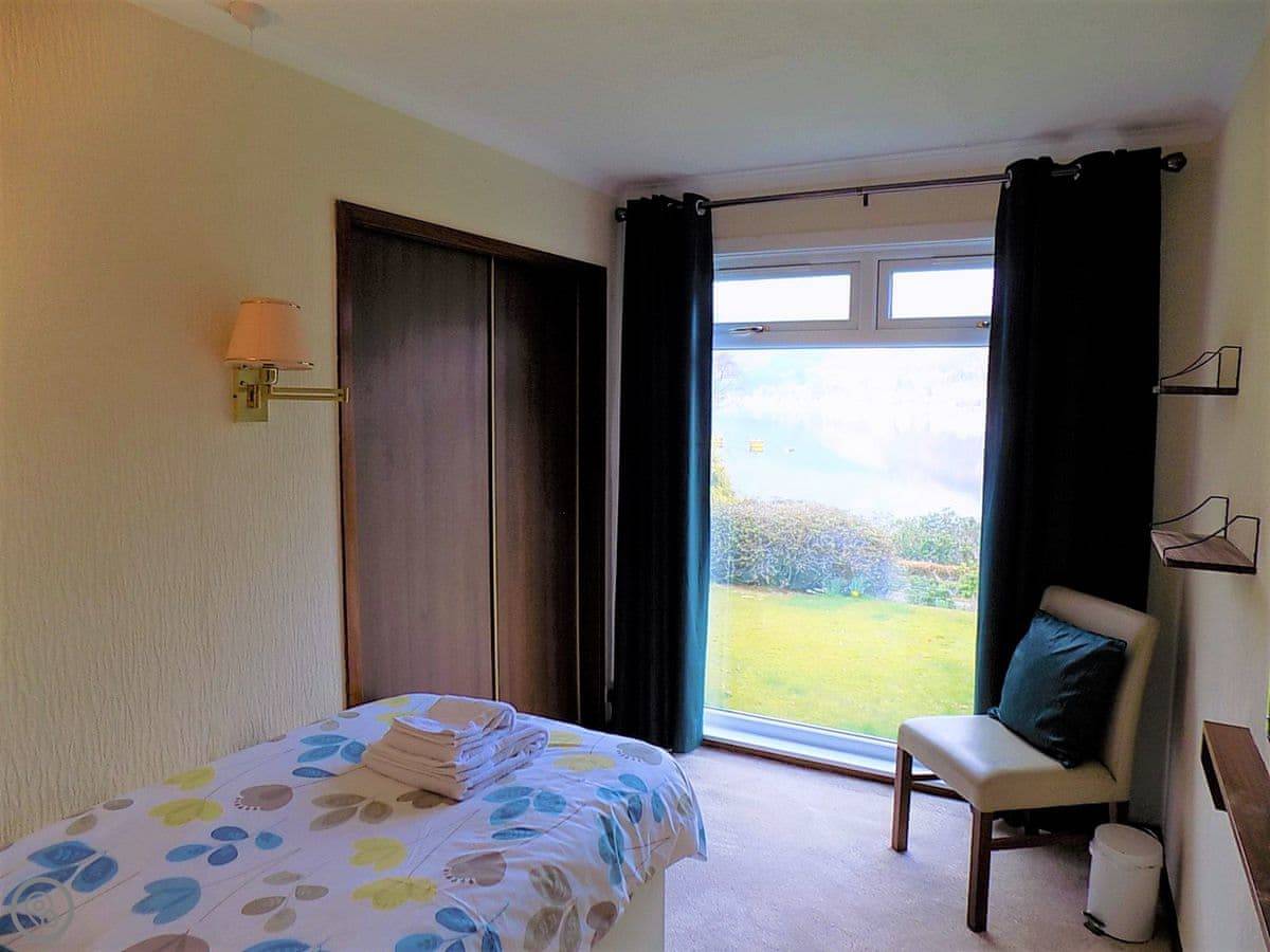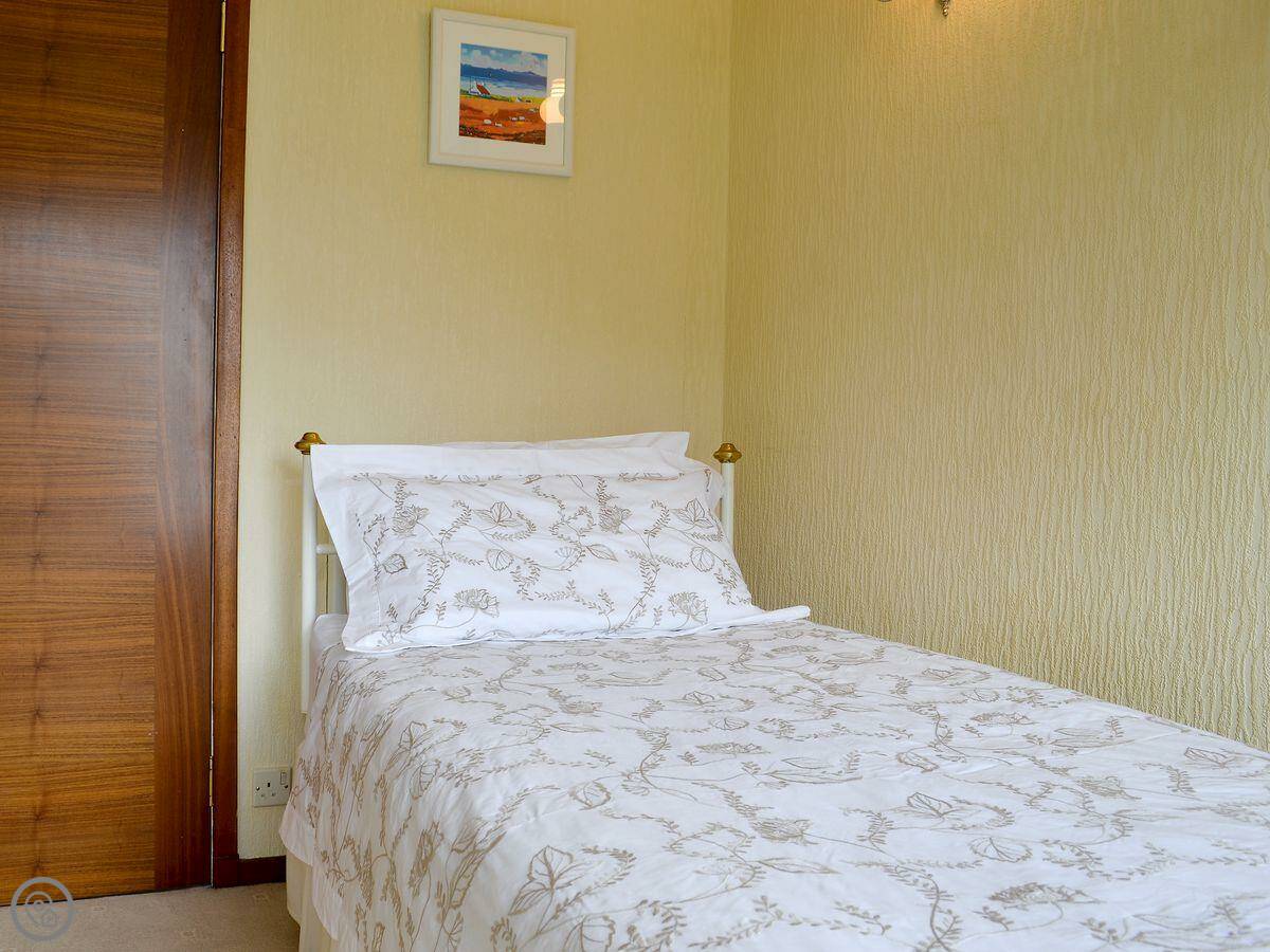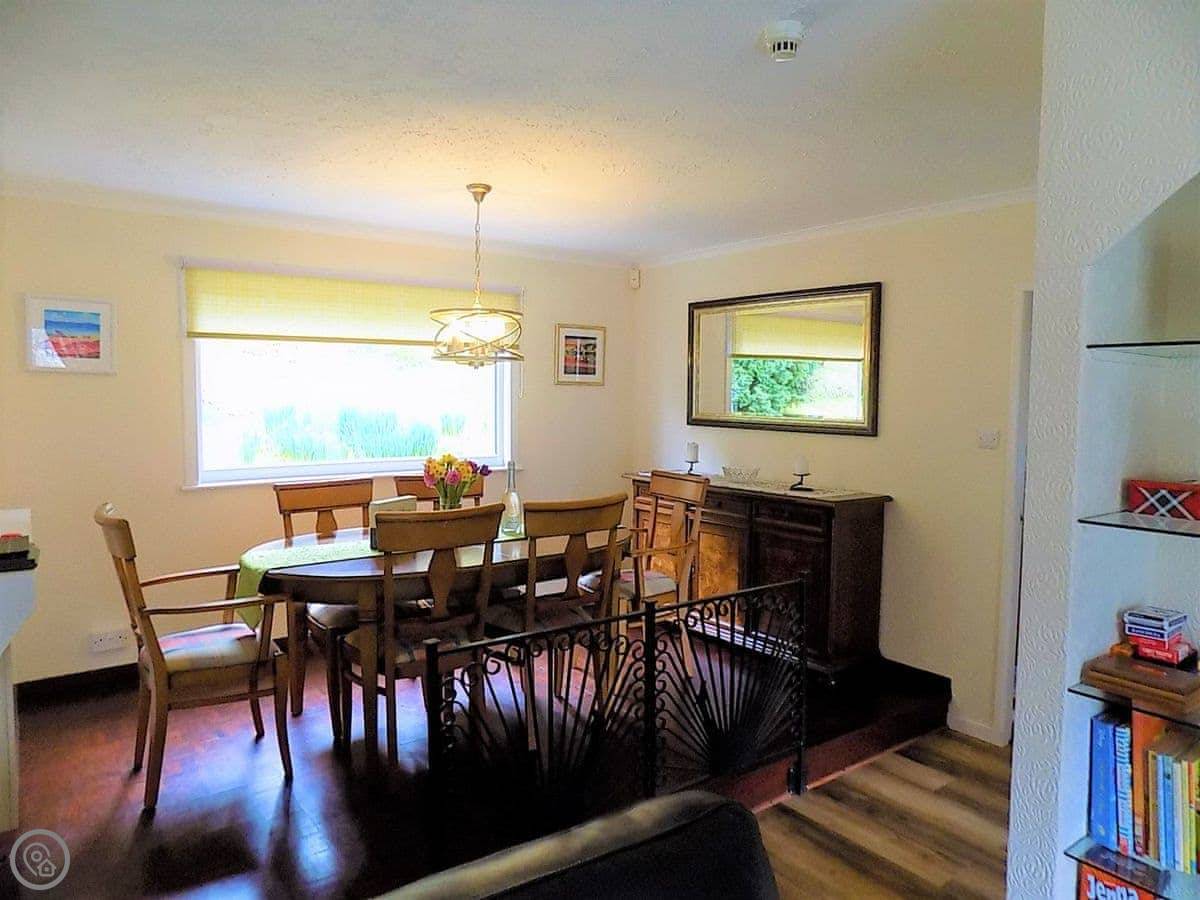 It sleeps six in four bedrooms, with two bathrooms. It's got a 4 Star rating. The garden is large and fully enclosed, which is good if you're bringing dogs or if kids are running about. It looks out over the loch and the mountains. You get that view from the living room.