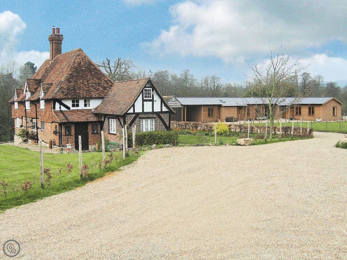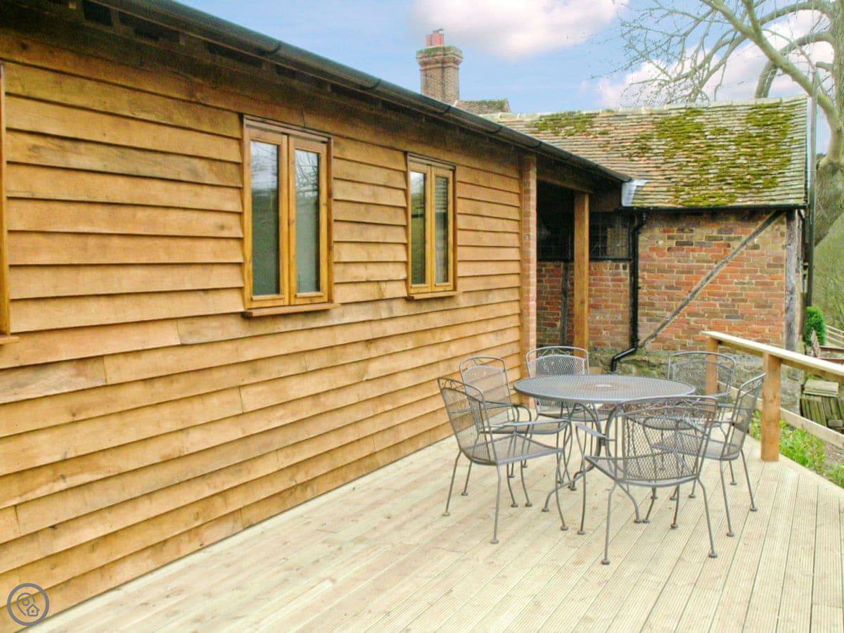 Outside, you share the patio area with the other barn. You’ve got your own bit. It looks out over the field. We’ve got about three and a half acres here, and you can walk into the Bearsted Woodland Trust land next door – that’s another fifteen acres of woods.