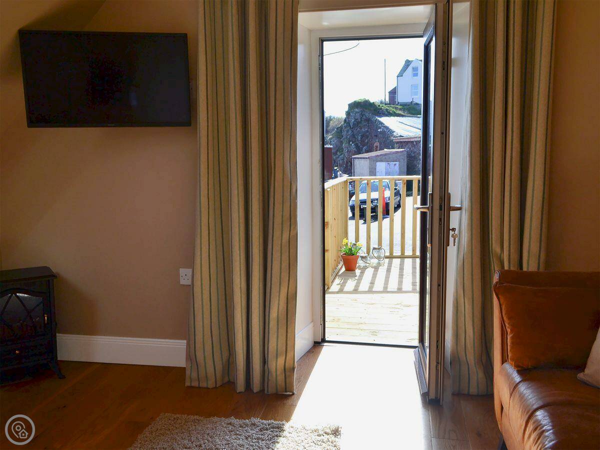 The main thing is the view. You can see the harbour from every window. The living room doors open onto a little decked area right by the rock face, which is a nice spot.