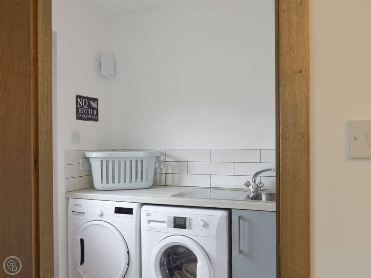 There's a utility room with a sink, which is useful for washing off sandy beach things. The garden is enclosed. You've got your own parking.