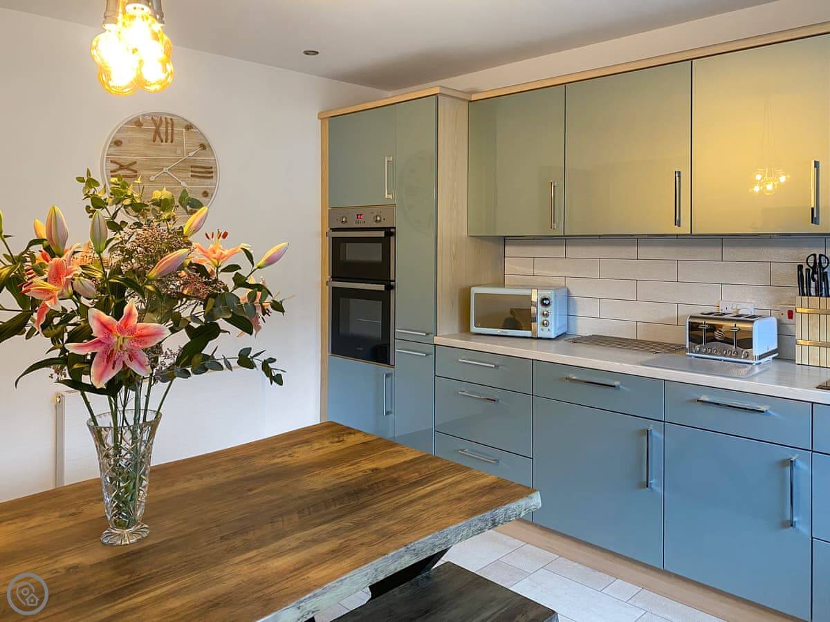 Inside, there's a washing machine, dishwasher, TV, and WiFi. We provide bedding and towels. There's a cot and highchair if you need them. Sorry, no pets.