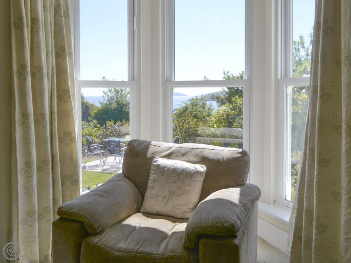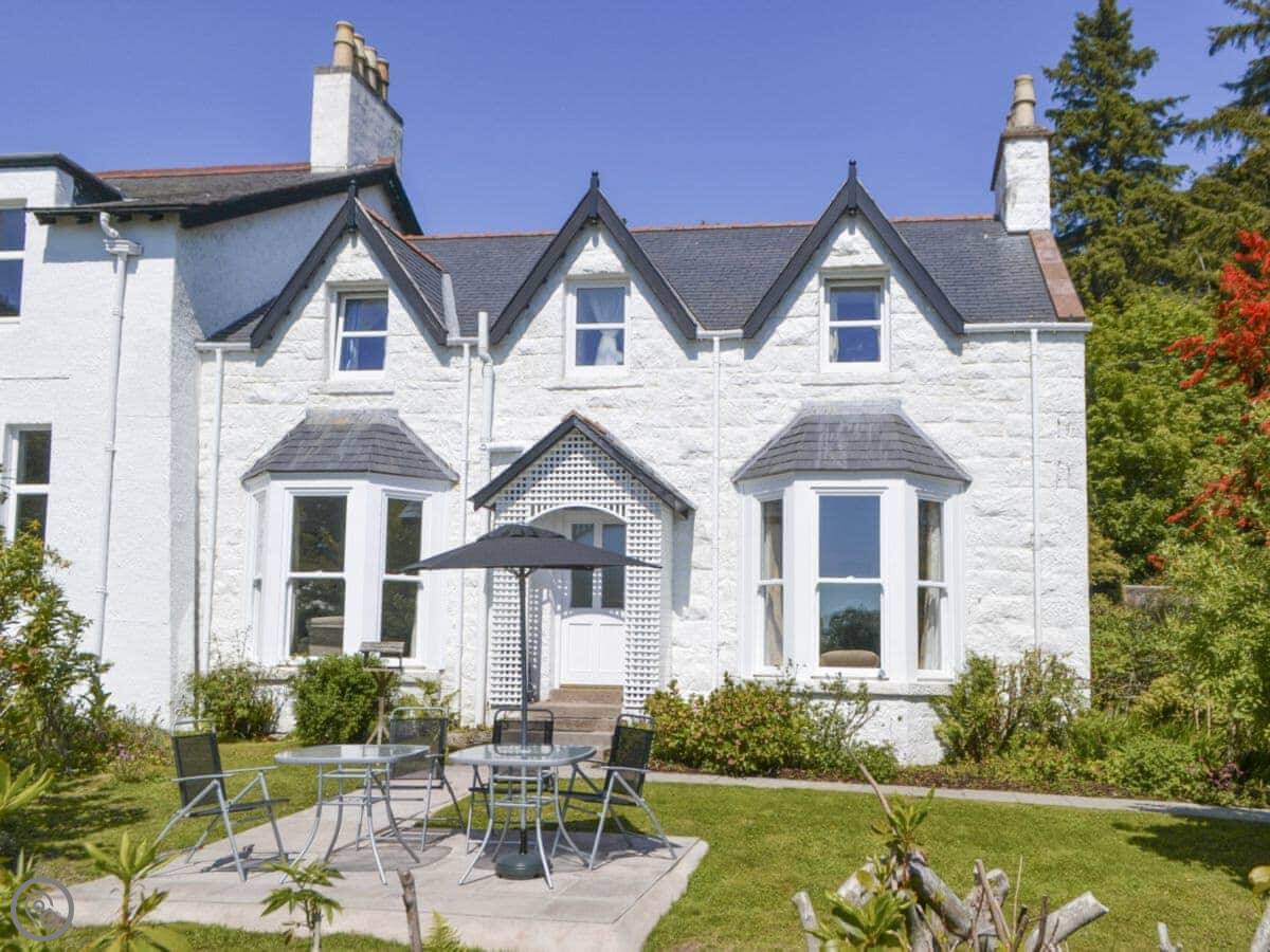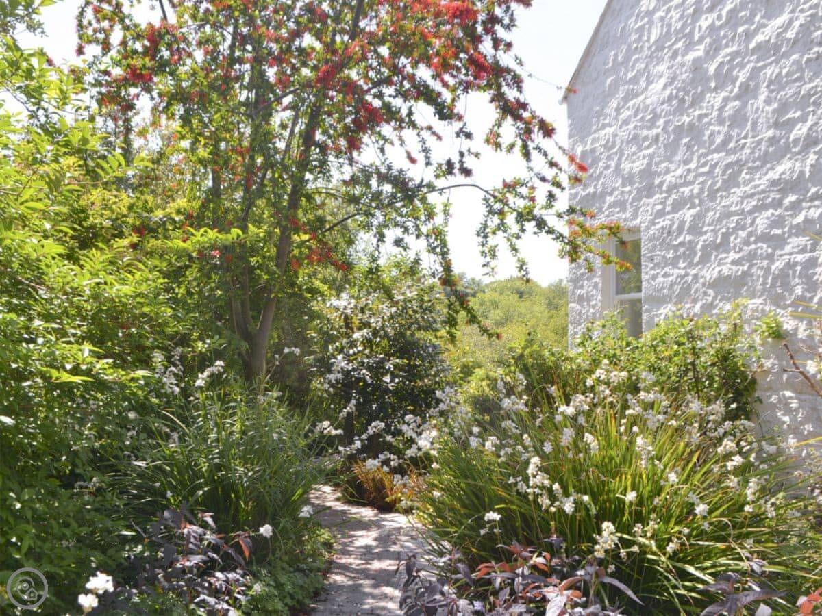 It sleeps eight. Four bedrooms, two bathrooms. It's a 4 Star, so it's comfortable and well-equipped. The garden wraps around two sides. It gets the evening sun, and you can see the sunset from there.