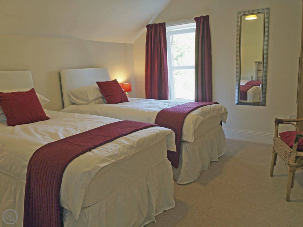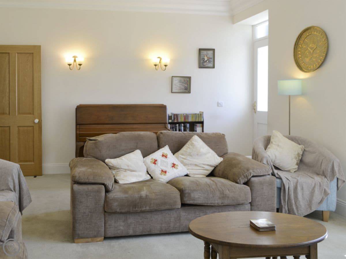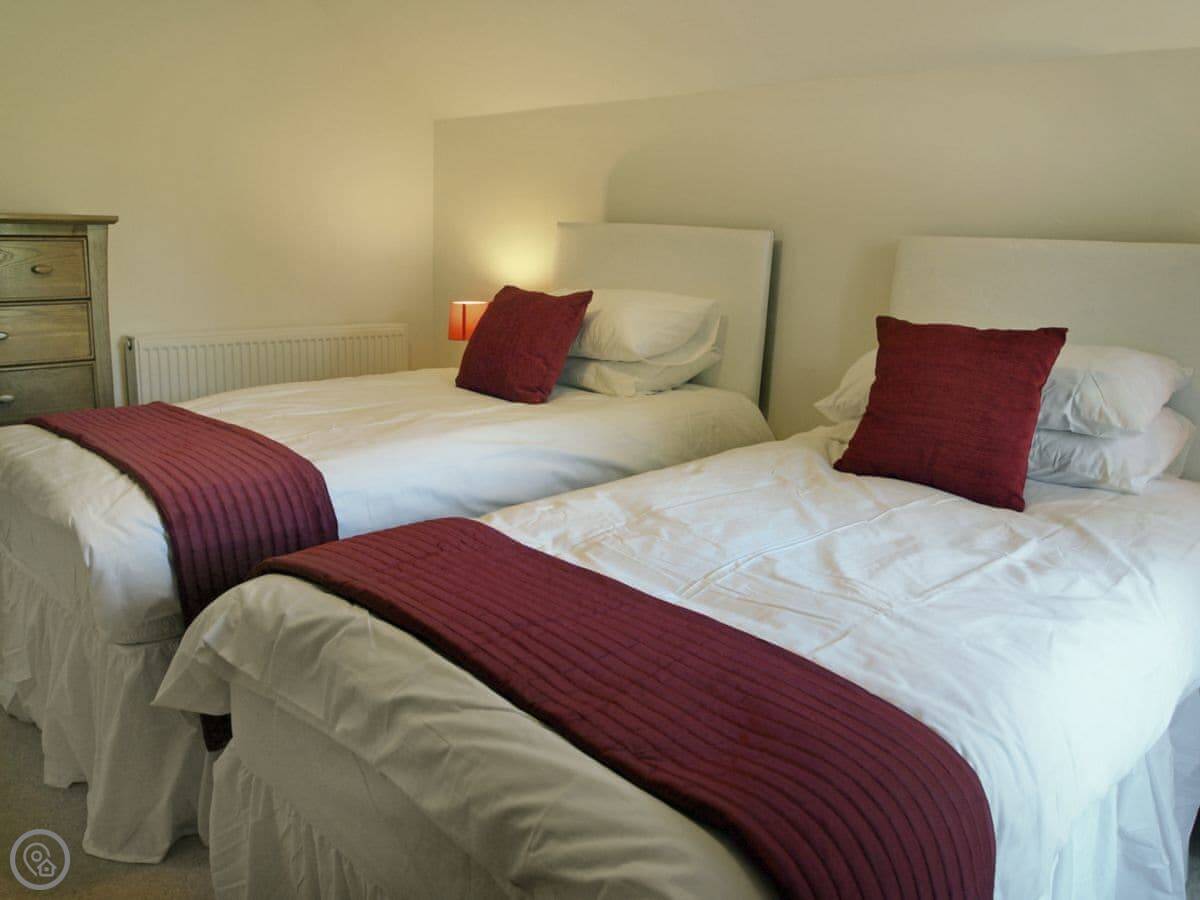 It sleeps eight. Four bedrooms, two bathrooms. It's a 4 Star, so it's comfortable and well-equipped. The garden wraps around two sides. It gets the evening sun, and you can see the sunset from there.