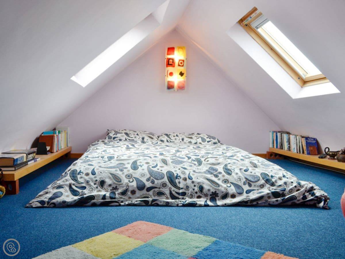 You need to know about the stairs. There's a loft ladder to get up to one bedroom. The ceiling is low up there.