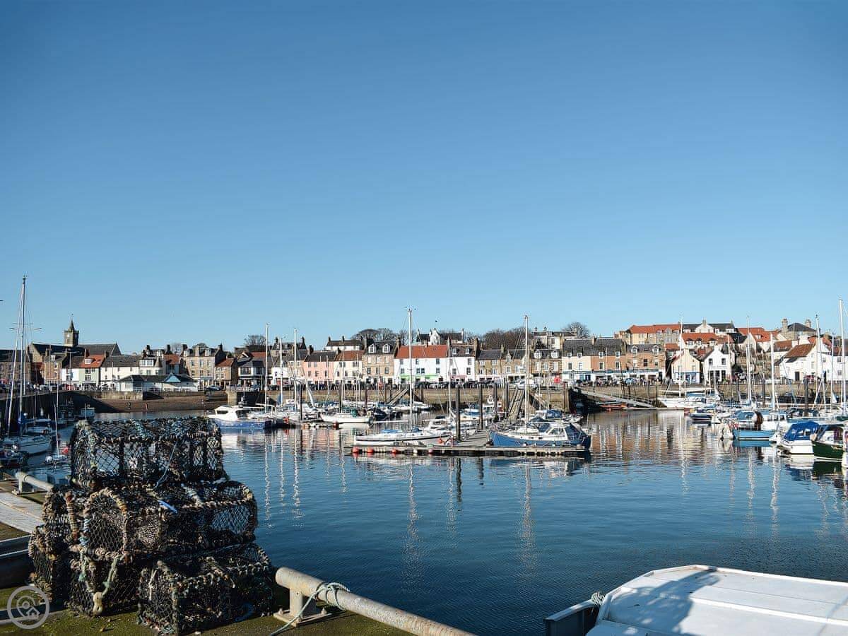 You can get boat trips from the harbour to the Isle of May to see the seabirds. St Andrews is about a fifteen minute drive away for the Old Course, the university, and the bigger shops.
