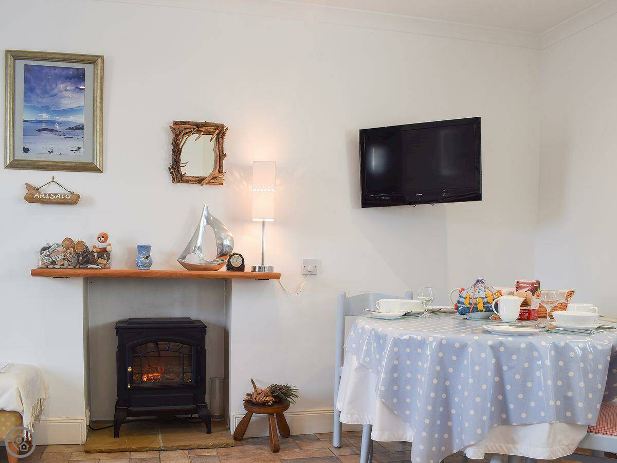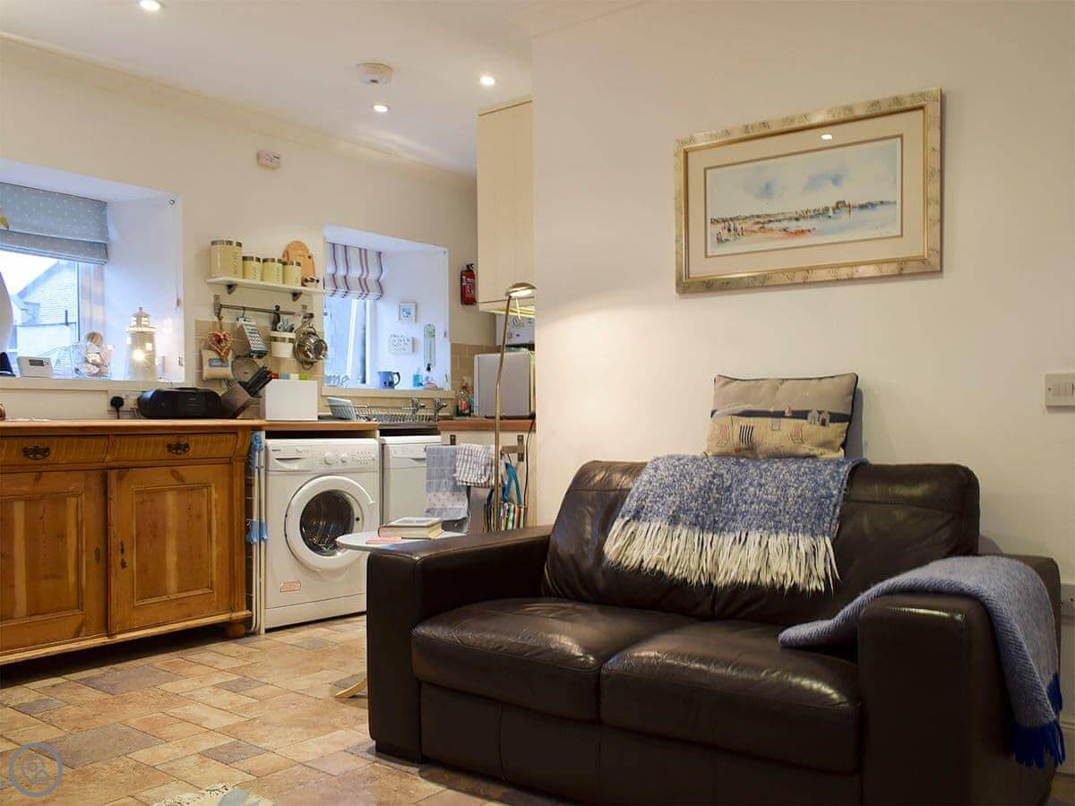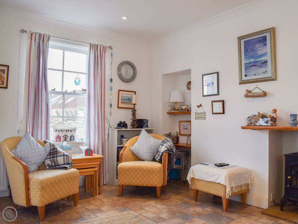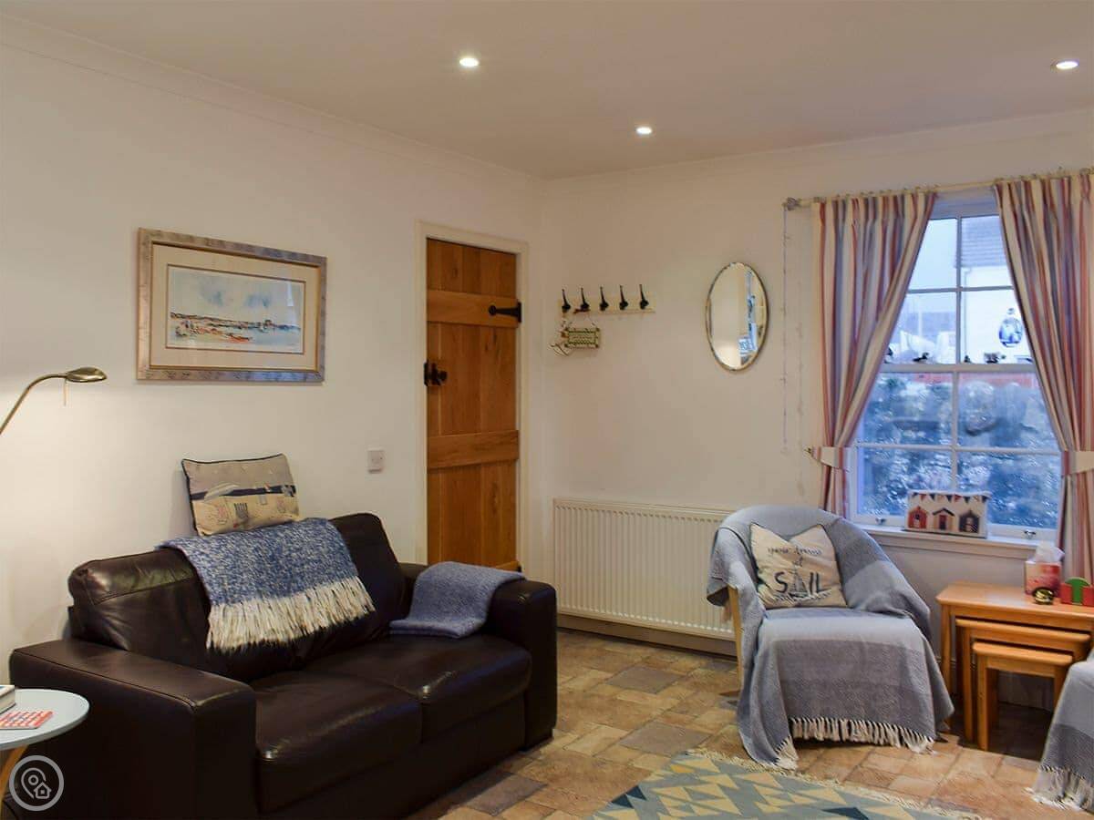 The cottage doesn't have its own garden, but you can put a chair out in the little lane, the wynd, if you want to sit outside. There's a small round window in the living room that looks straight out towards the Isle of May.