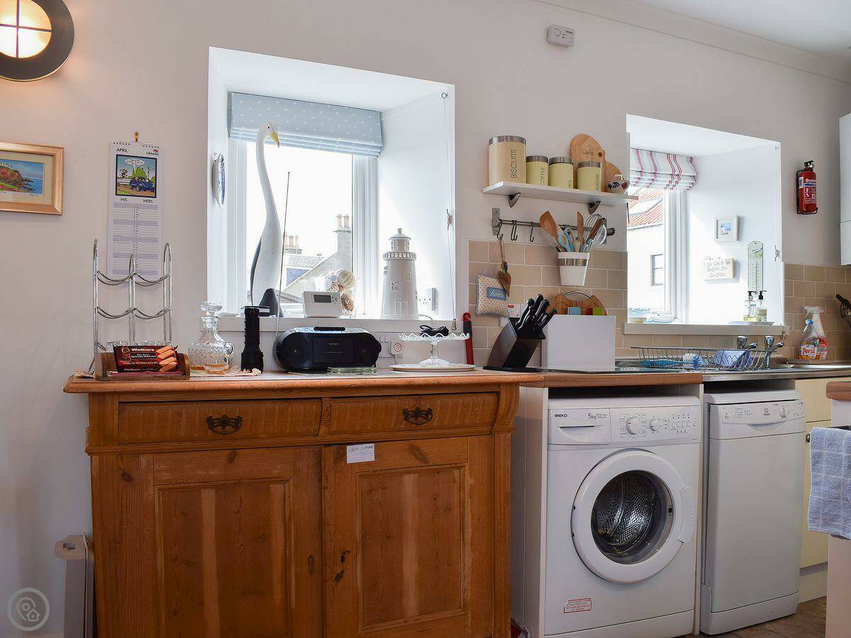 You're about a minute's walk from the harbour. The pub is close, and there are a few shops. Anstruther Fisheries for fish and chips is down there too.