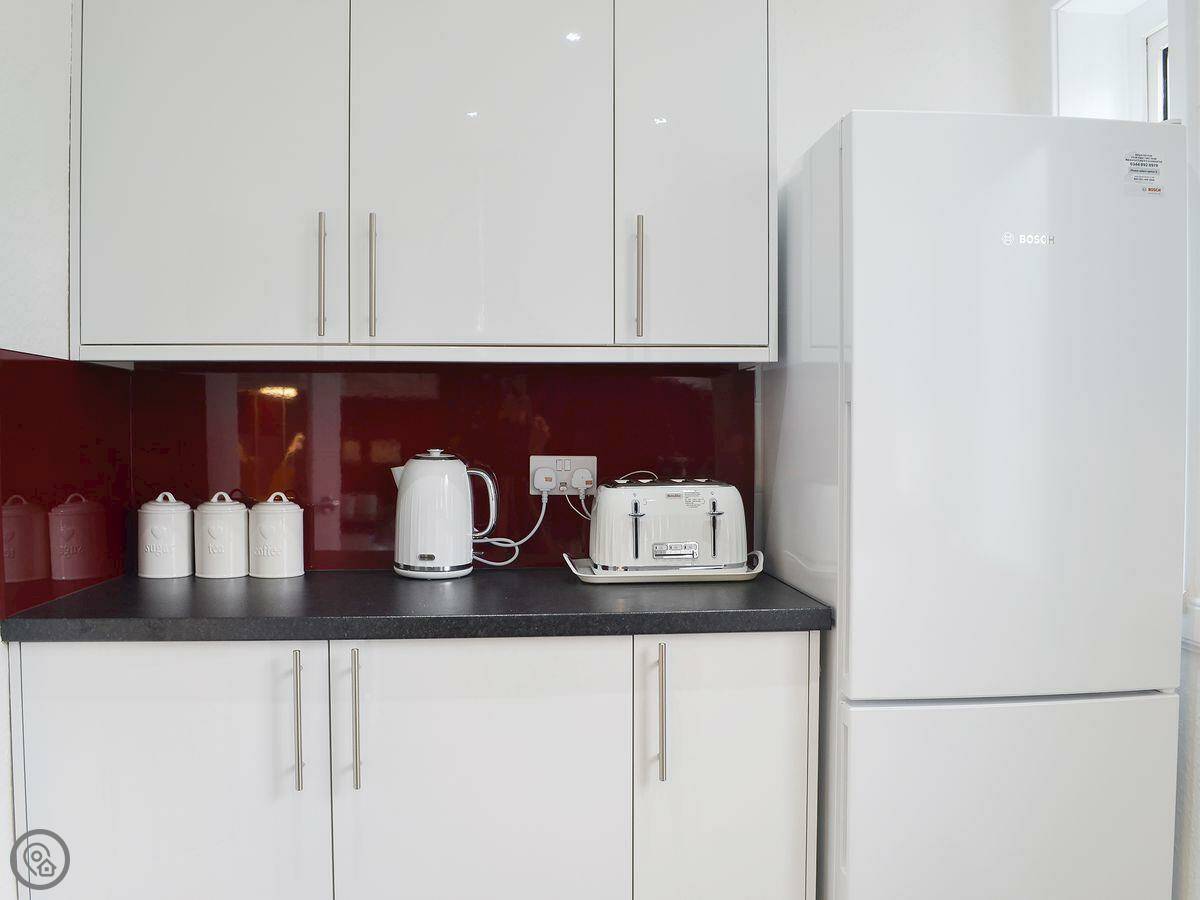 Inside, it's got what you need. Washing machine, dishwasher, WiFi, TV. Bedding and towels are included. There's a cot and highchair if you need them. You can bring one dog.