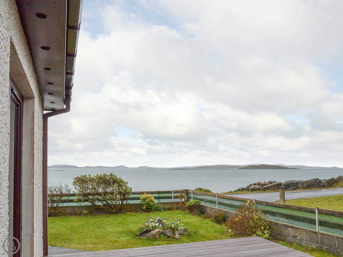 You're right on the coast here. The beach is a short walk away, maybe twenty yards. It’s white sand. The machair land behind it is full of wildflowers in summer. You’ll see a lot of birds. Eagles sometimes. From the water, you might spot whales or basking sharks in the season.